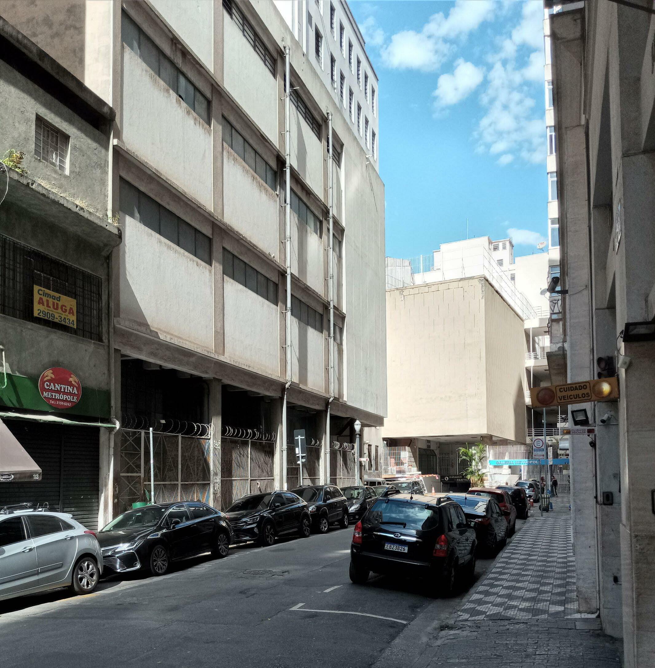 É nesse local e contexto social que ganha proeminência um tipo específico de edifício: a galeria, que permite passagem por sua área interna, normalmente atrelada a usos comerciais. Em verdade, as galerias têm origem muito anterior nas cidades europeias e sua existência na cidade de São Paulo não é exclusiva dessa região. Vemos no Conjunto Nacional, por exemplo, um representante icônico desse tipo de edifício, que adota em seu embasamento a conexão entre a Avenida Paulista, Rua Augusta, Alameda Santos e Rua Padre João Manuel.