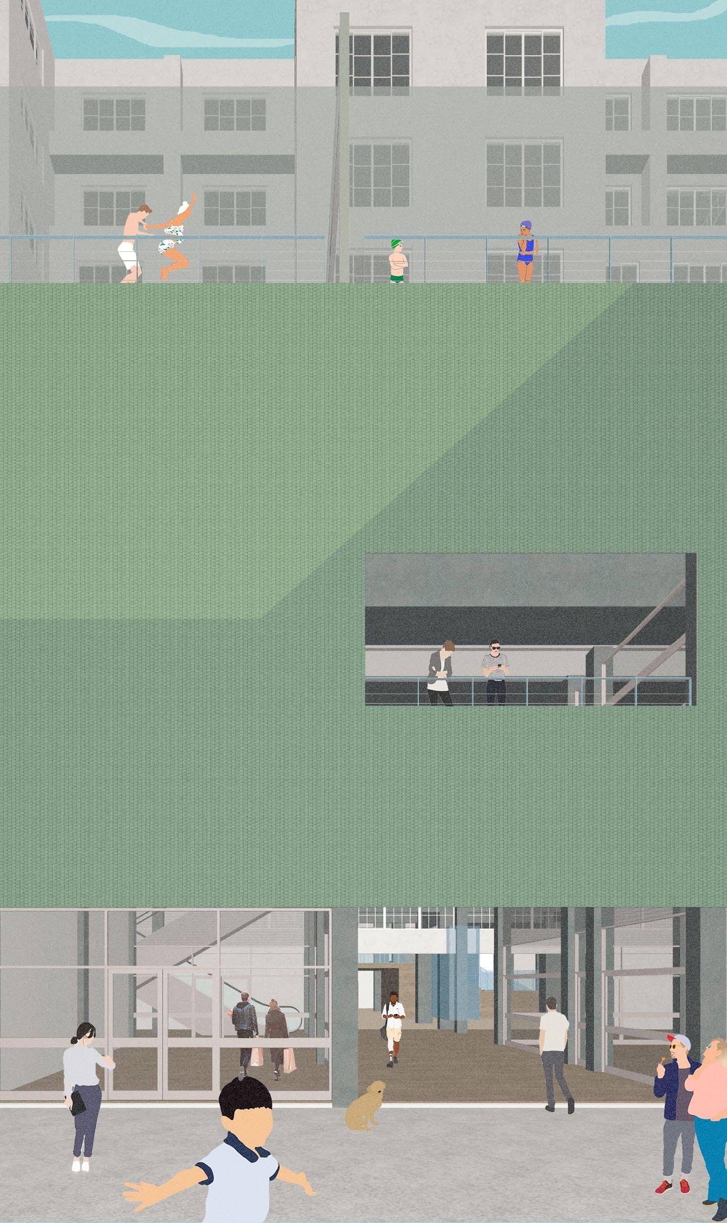 Saguões de acesso Bicicletário Circulação central Acesso aos escritórios Lojas Pátio aberto 5