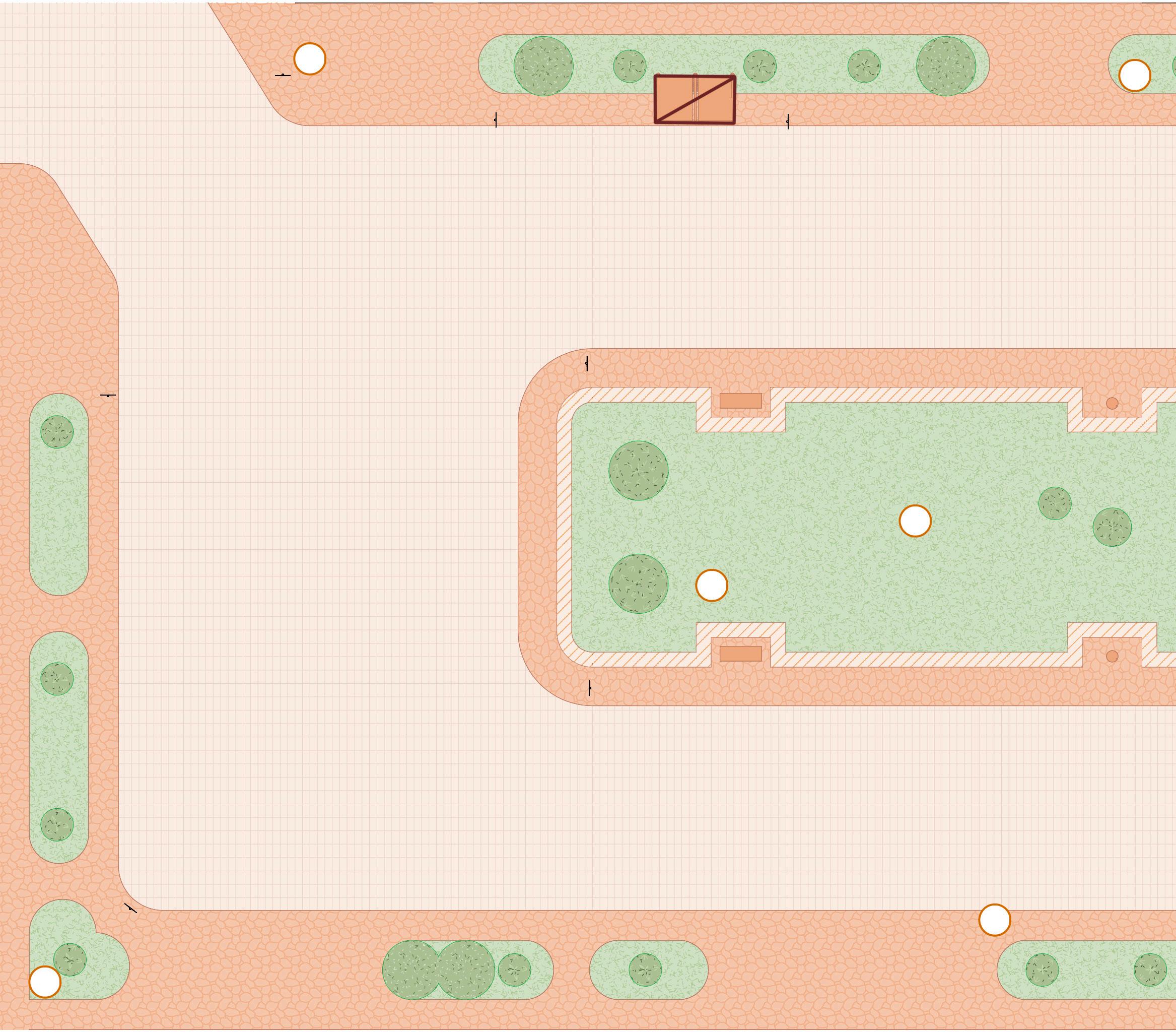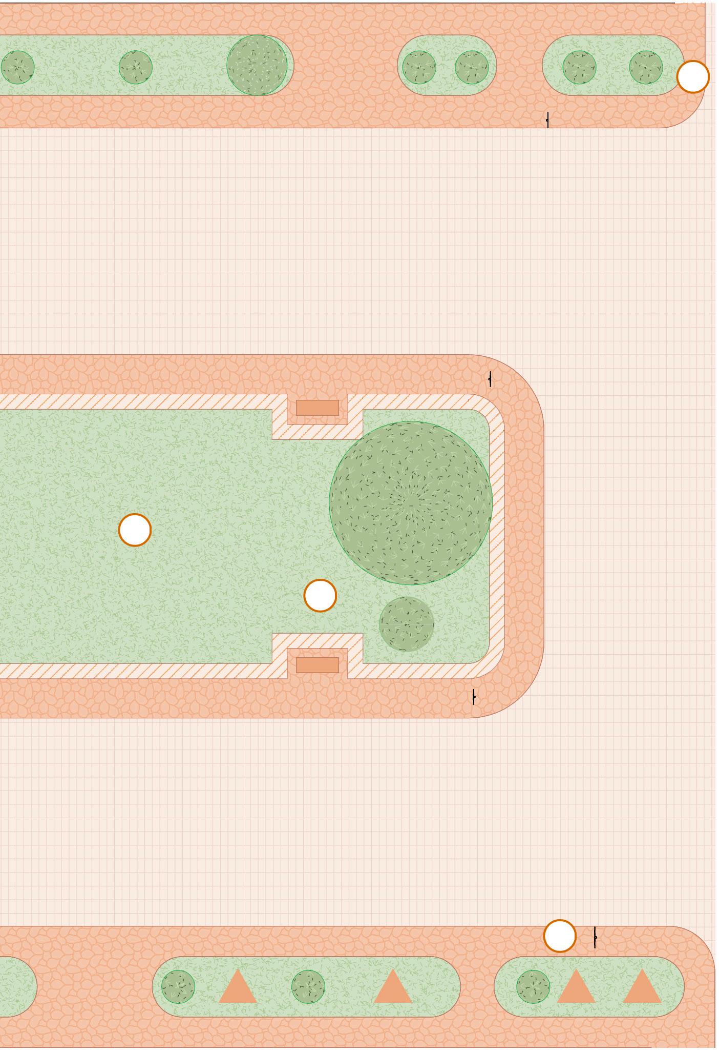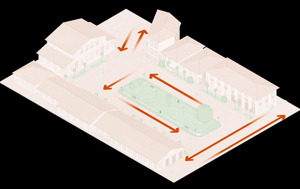 1. Aumento da permeabilidade de fluxos: melhorando a travessia e permitindo que haja circulação pelo centro da praça. Para tanto, pretende-se criar escadas e caminhos de pedra que atravessem a praça para que haja mais possibilidades de rotas para quem passa pelo local.