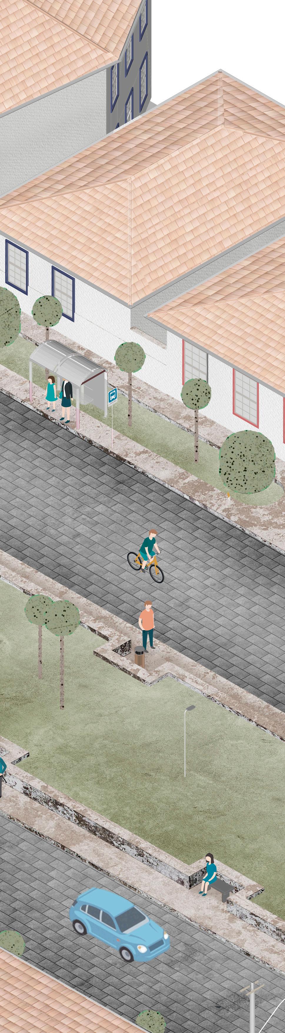 Além disso, usaremos também a oficialização dos muros de arrimo como assentos secundários, removendo os bancos de pedra, e transformando as muretas em arquibancadas de pedra. A materialidade da praça respeita o visual do bairro.