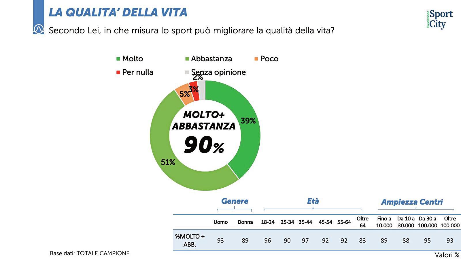 Lo sport é lo strumento di politica pubblica che, per eccellenza, ha un altissimo impatto sulla qualità di vita della popolazione a fronte di un basso investimento di risorse, essendo in grado di favorire la socializzazione e l’integrazione, stimolare il senso civico di appartenenza e il rispetto del bene comune, ispirare, attraverso i suoi valori, il rispetto delle regole e degli avversari, la passione, il gioco di squadra e l’inclusività.