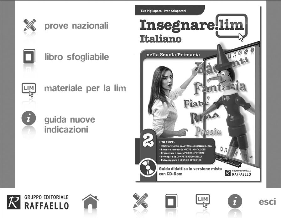 – le schede in formato PDF. Le pagine operative di Insegnare.LIM sono presentate anche in forma digitale, per essere proiettate sulla LIM. In questo modo risulterà agevolata, ad esempio, la spiegazione dell’esercizio o la correzione collettiva dei lavori. Le schede in formato PDF possono essere gestite con il software caratteristico del modello di LIM in dotazione (ad esempio per sottolineare, scrivere o cancellare).