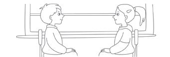 Scrivi nei fumetti le parole che si dicono i due personaggi ricavandole dal testo.