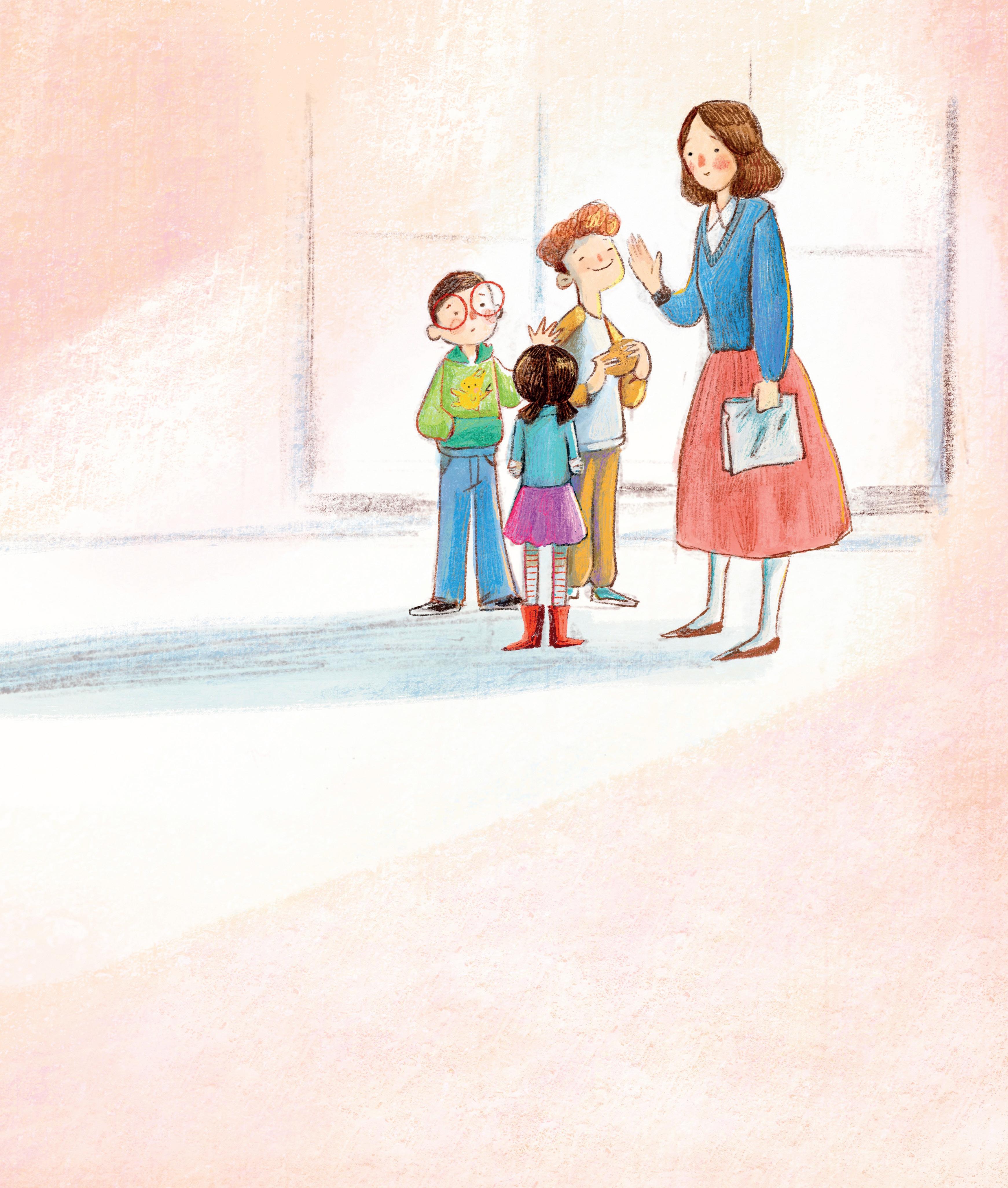 La maestra gli dà il benvenuto. Io non ascolto tutto quello che dice.