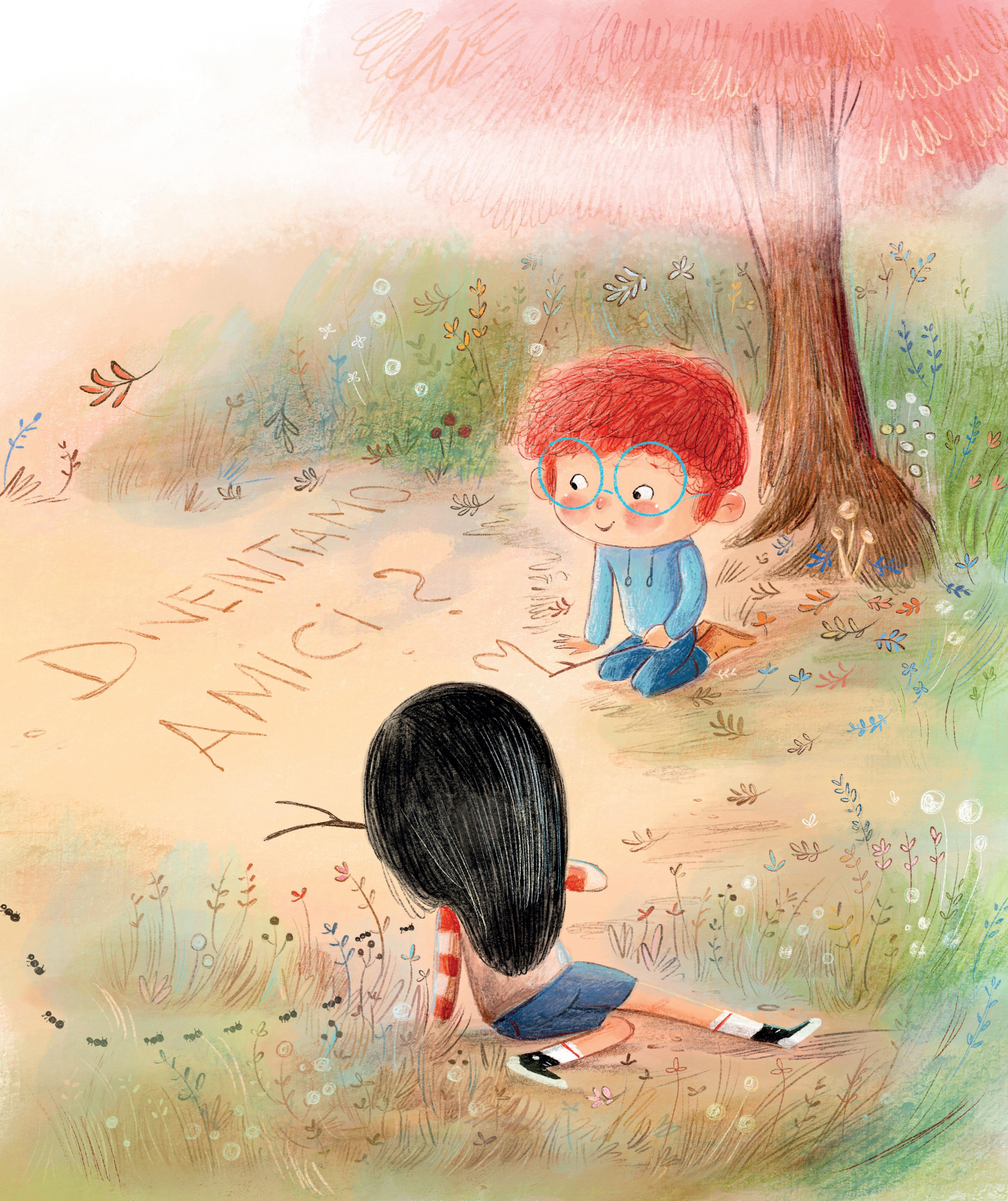 La scuola è cominciata solo da qualche minuto e ci sono già delle novità. La maestra ci ha appena detto che sta arrivando un nuovo alunno, però non ha voluto svelarci il suo nome e neppure se si tratta di un maschio o di una femmina. Così adesso la Siccome a merenda spesso si gioca a squadre e siamo dispari, i miei compagni, tutti emozionati, parlano uno sopra l’altro, agitano le mani, saltellano come grilli…