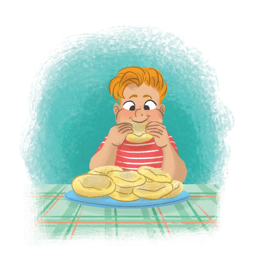 sempre di giallo e (mangeranno/mangiavano) solo cose gialle: risotto allo zafferano, polenta e frittata.