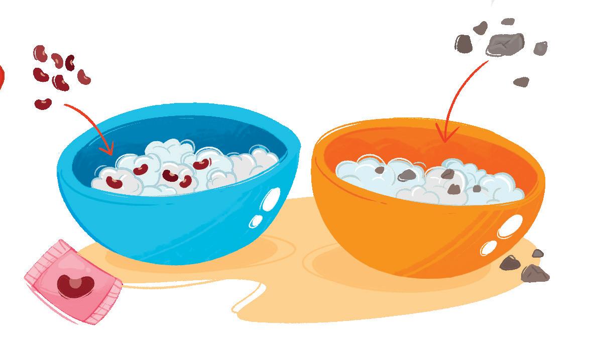 2. In una ciotola mettete i fagioli e nell’altra i sassolini.