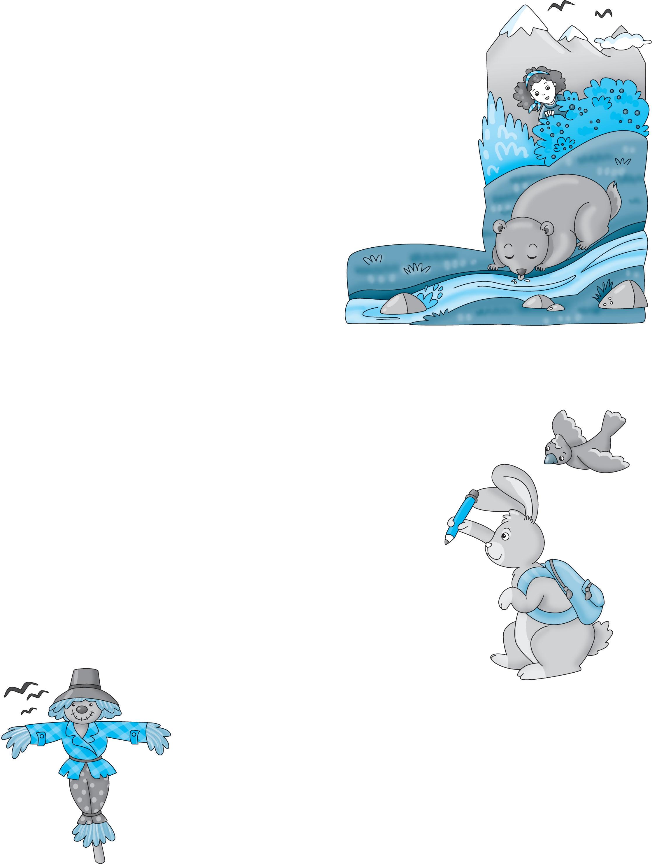 Osserva i disegni e scrivi le parole. asciugamano finestrelle carota tappeto montagna acquitrino a/sciu/ga/ma/no