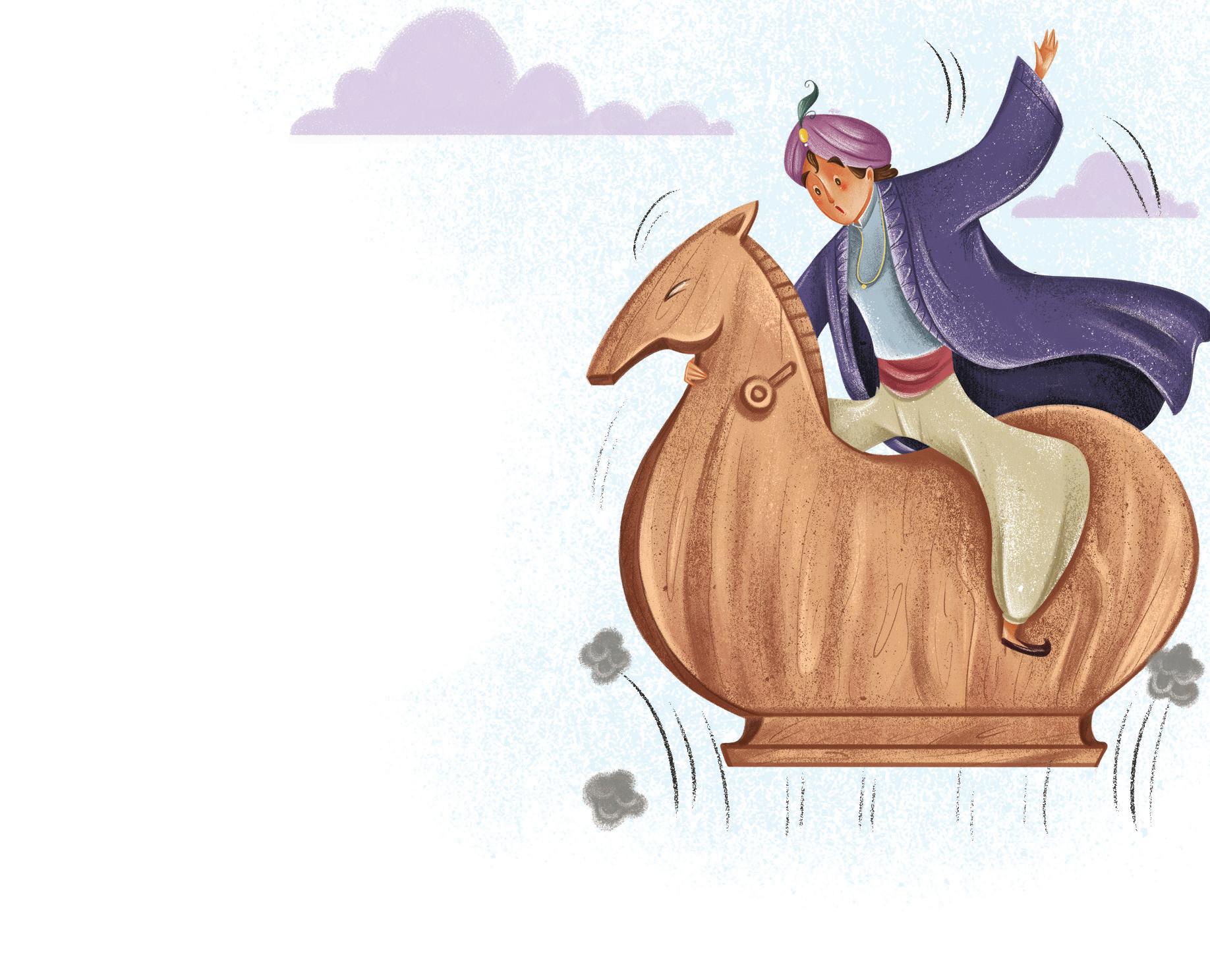 Pieno di gratitudine, Ahmed baciò la sposa e partì alla volta del reame delle Indie per consegnare il dono al padre. Il sultano ne fu commosso, ma con l’animo in subbuglio a causa dei perfidi consiglieri, volle rimettere alla prova la buona fede del figlio.