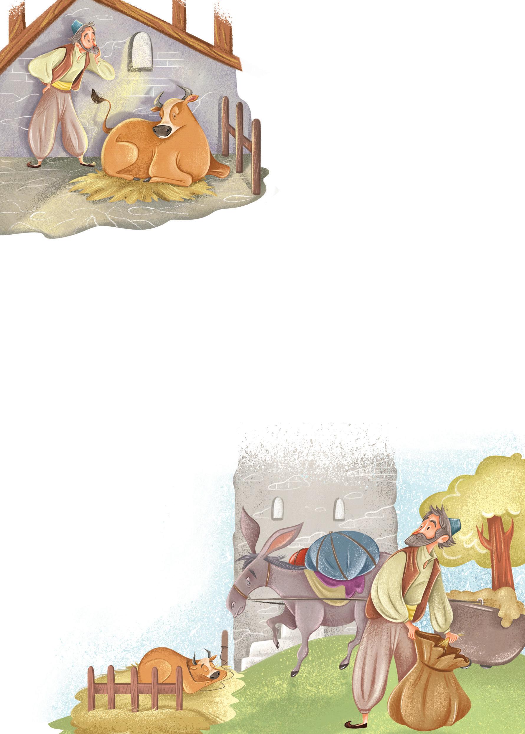 – Domani servi al bue fieno tenero e acqua limpida –disse il mercante al contadino. – Poi vai dall’asino e fallo lavorare al posto del bue. E affaticalo per bene, mi raccomando.