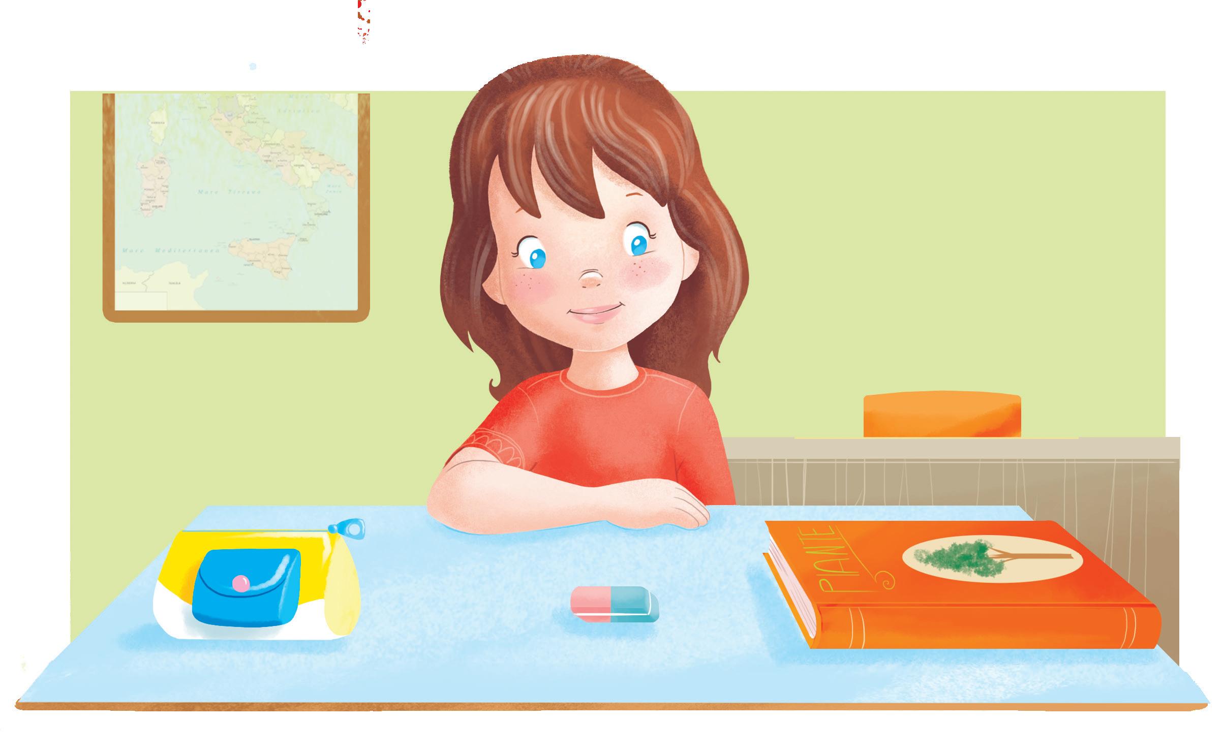 OSSERVA LA BAMBINA E RIORDINA GLI OGGETTI CHE HA SUL BANCO DAL PIÙ PICCOLO 1 AL PIÙ GRANDE CON