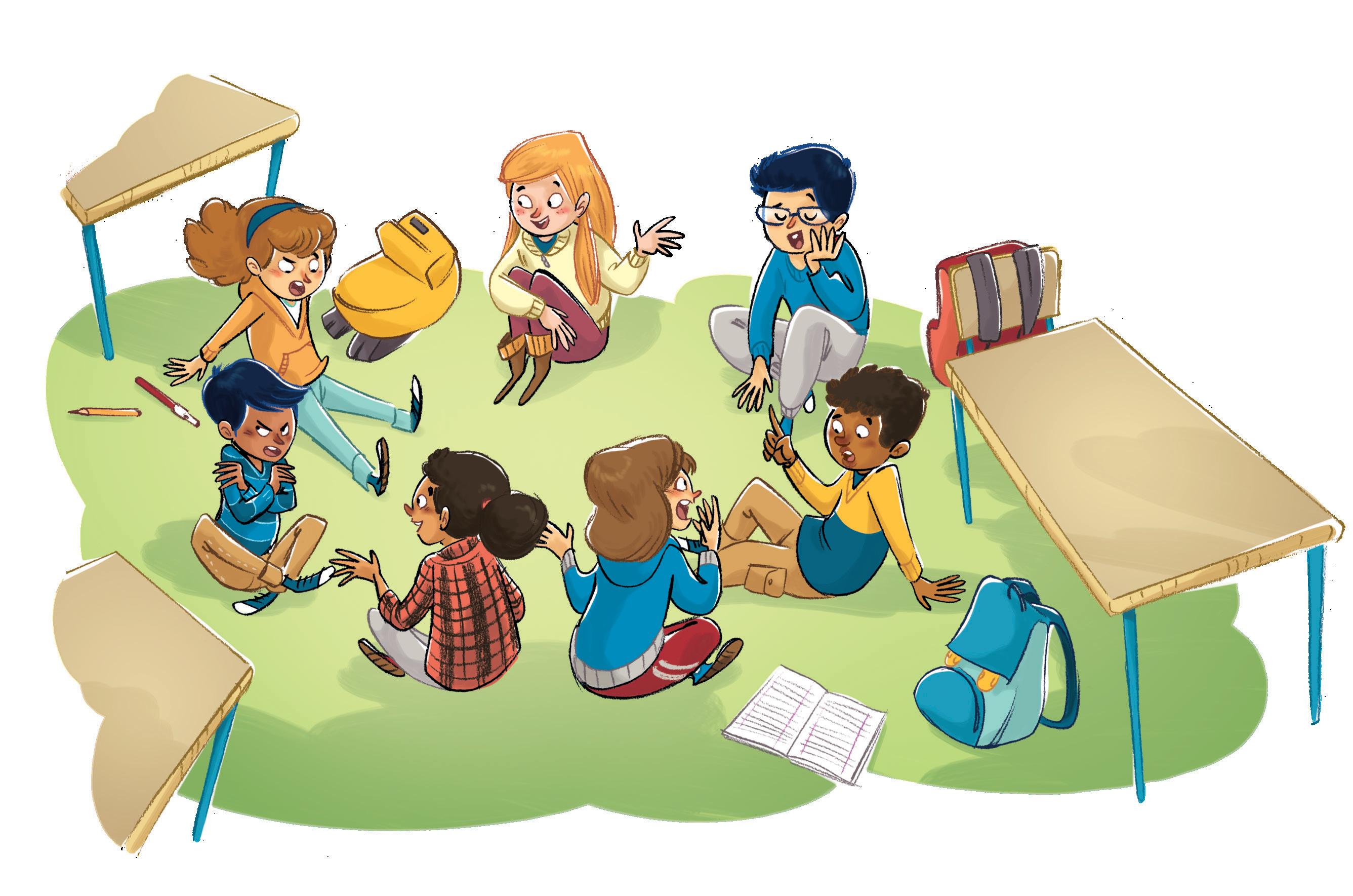 3 Leggi il fumetto, poi spiega con parole tue che cosa dicono i ragazzi e le ragazze.