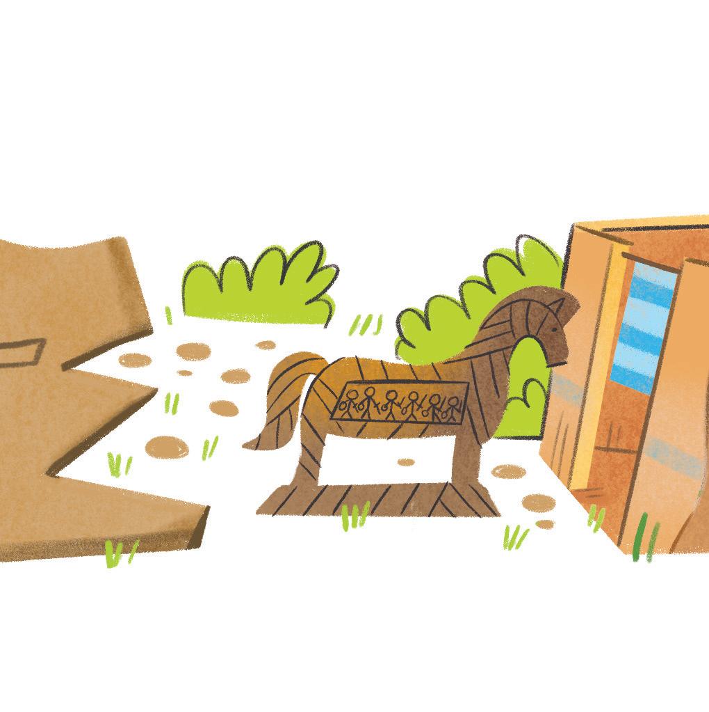 I Greci e i Troiani erano in guerra da dieci anni, ma la città di Troia non voleva arrendersi. Così Ulisse ebbe un’idea per porre fine alla guerra. Andò da Agamennone, il capo dei Greci, e spiegò il suo piano: costruire un cavallo gigante dentro il quale nascondere i guerrieri. Il resto dei Greci avrebbe fatto finta di partire con le navi. In questo modo, i Troiani avrebbero pensato che la guerra fosse finita.