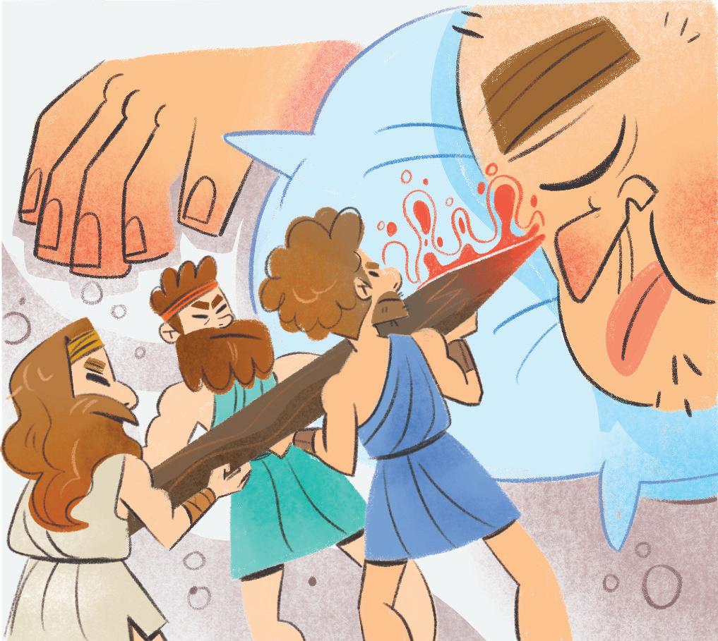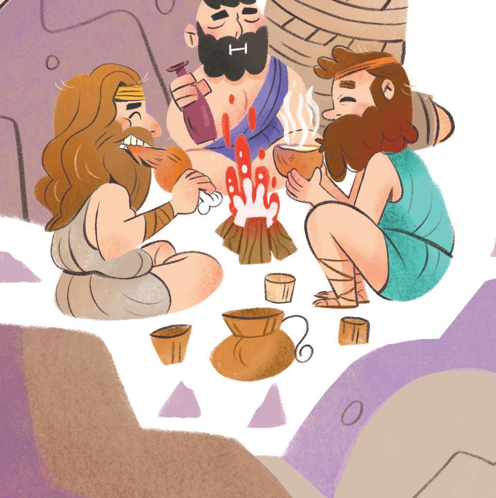 Il gigante non fu gentile, così Ulisse pensò a un piano per salvarsi. – Ho un dono per te – disse e gli offrì il vino.