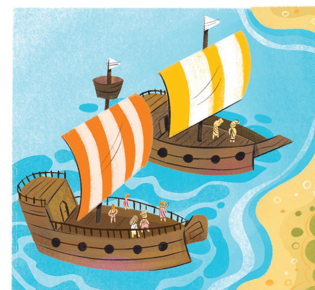 Il viaggio era ancora difficile e pieno di avventure, ma Enea non si arrese; era un eroe coraggioso e pensava sempre alla sua missione: raggiungere un nuovo posto dove vivere.