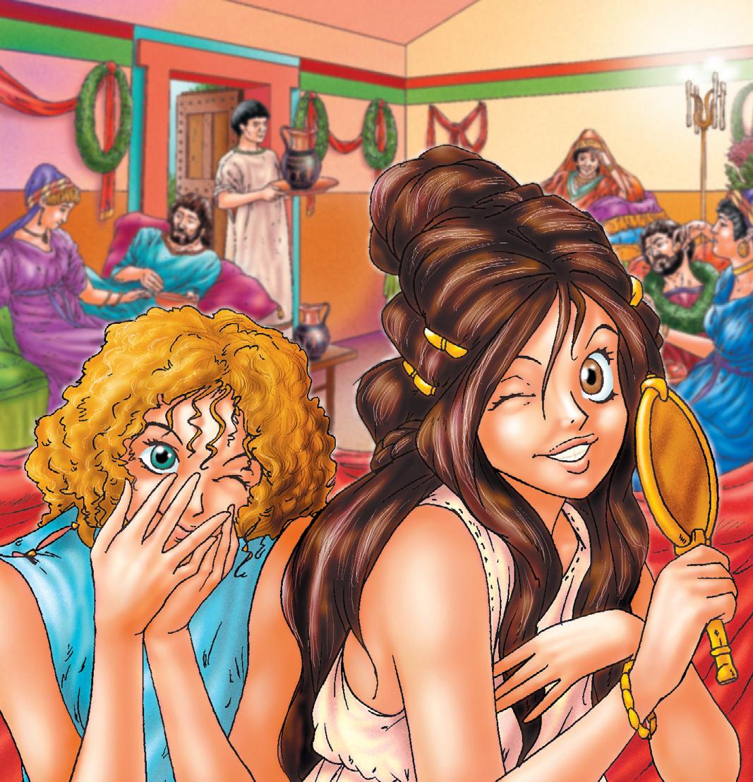 - … Sono pi ù brava di te in matematica e nella letteratura greca. Ho sentito il maestro che lo diceva giusto l’altro giorno! Quindi, merito più di te di partecipare al banchetto!