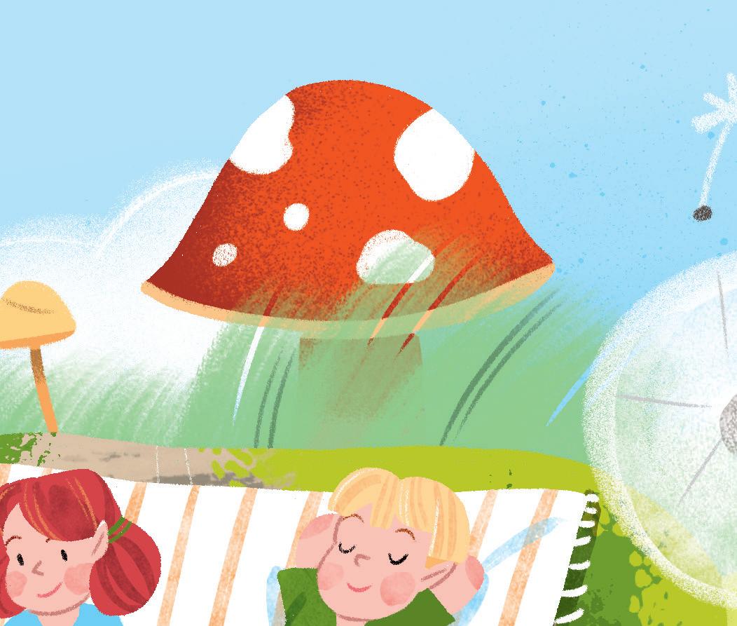 Nel pomeriggio, Piribella e Piribello si sdraiano su una pietra scaldata dal sole e coperta di muschio. Leggono un libro grande come l’unghia del tuo mignolo.
