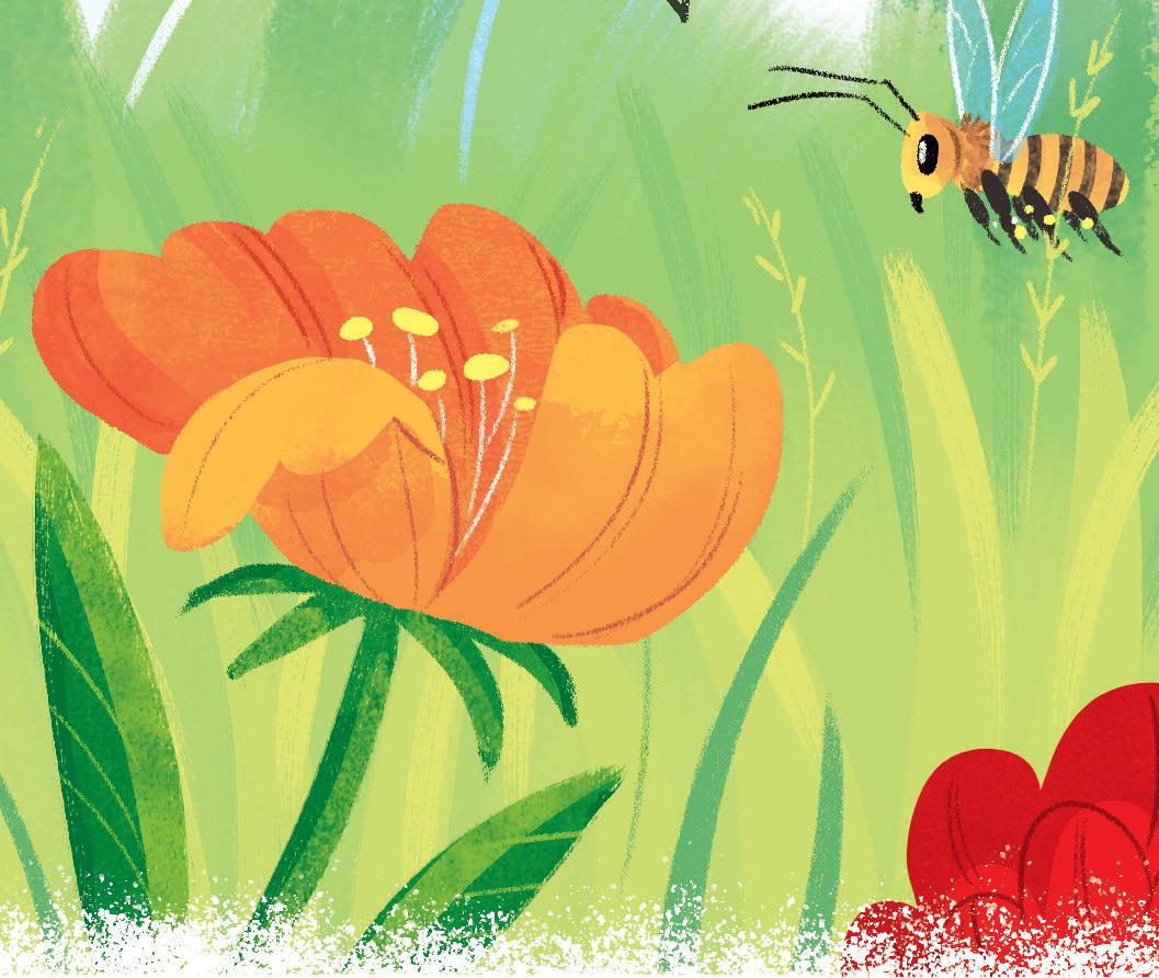 Mentre il cielo si accende di arancio e di viola, di rosso vivo e rosso mattone, di giallo chiaro e di blu profondo, si mettono a cantare. La loro voce è sottile sottile, flebile come un sussurro, limpida e intonata. Non è facile sentirla, ma se sai prestare molta attenzione puoi ascoltare una canzone che parla di api, di alberi e di uccelli.