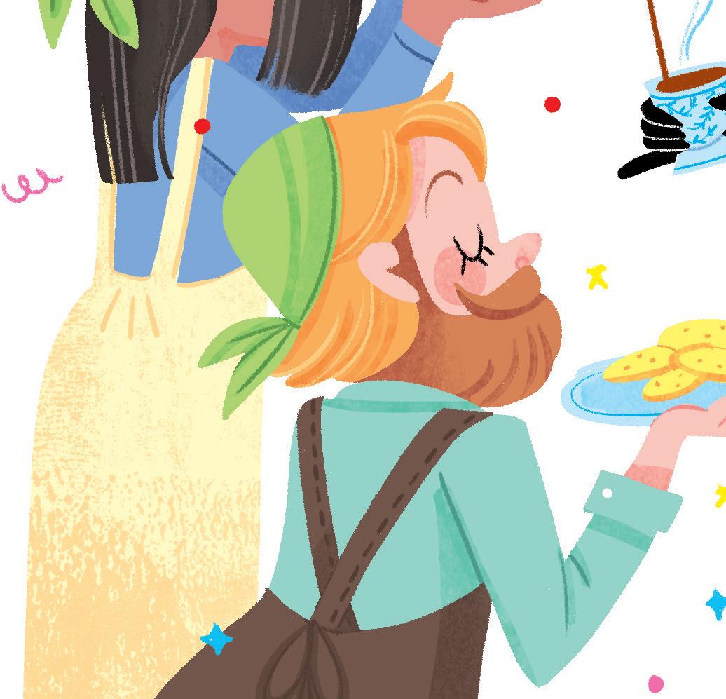 A pranzo, Piribella e Piribello mangiano un chicco di riso ciascuno cotto nel brodo di patata e, come dolce, una goccia di miele d’acacia che le api gli regalano per antica amicizia.