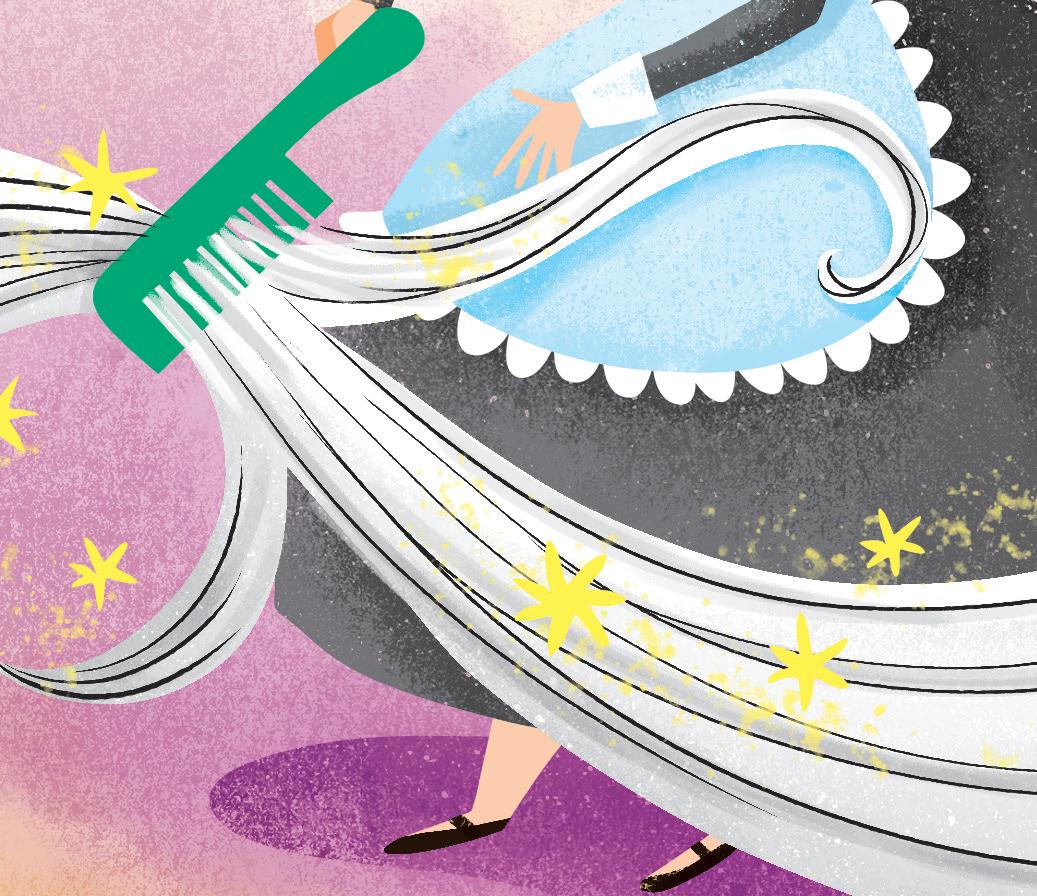 Rosa ubbidì. Tirò fuori un pettine dalla borsetta e cominciò a pettinare la barba del Mago. I peli erano sporchi e aggrovigliati, con impigliati qualche pidocchio e dei pezzetti di cibo. Non fu un lavoro gradevole, ma Rosa lo fece senza lamentarsi e talmente bene che la barba diventò liscia, lucida e pulita.