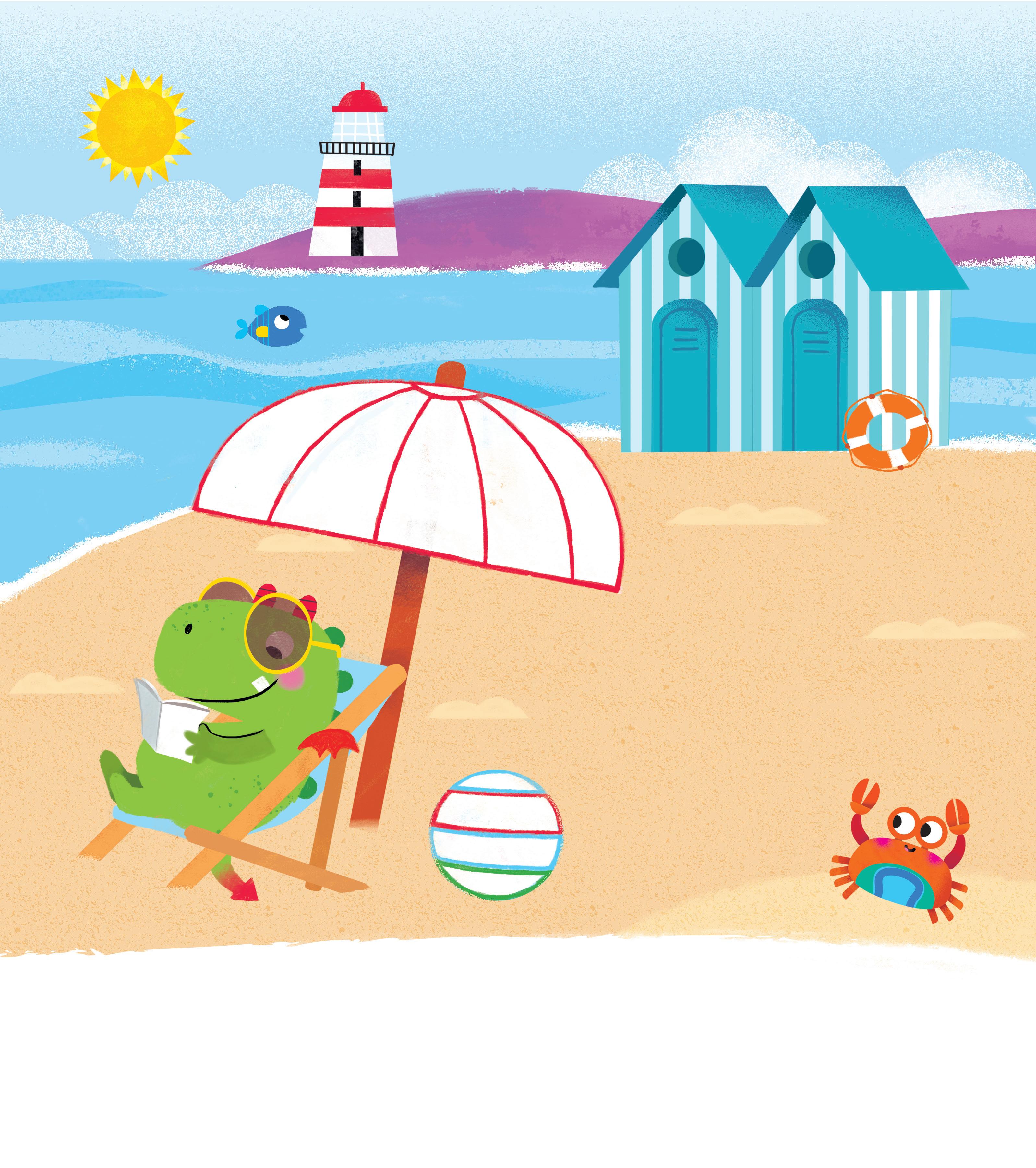 Aiuta Draghetto a raggiungere i luoghi di vacanza e ripassa i percorsi con i colori indicati.