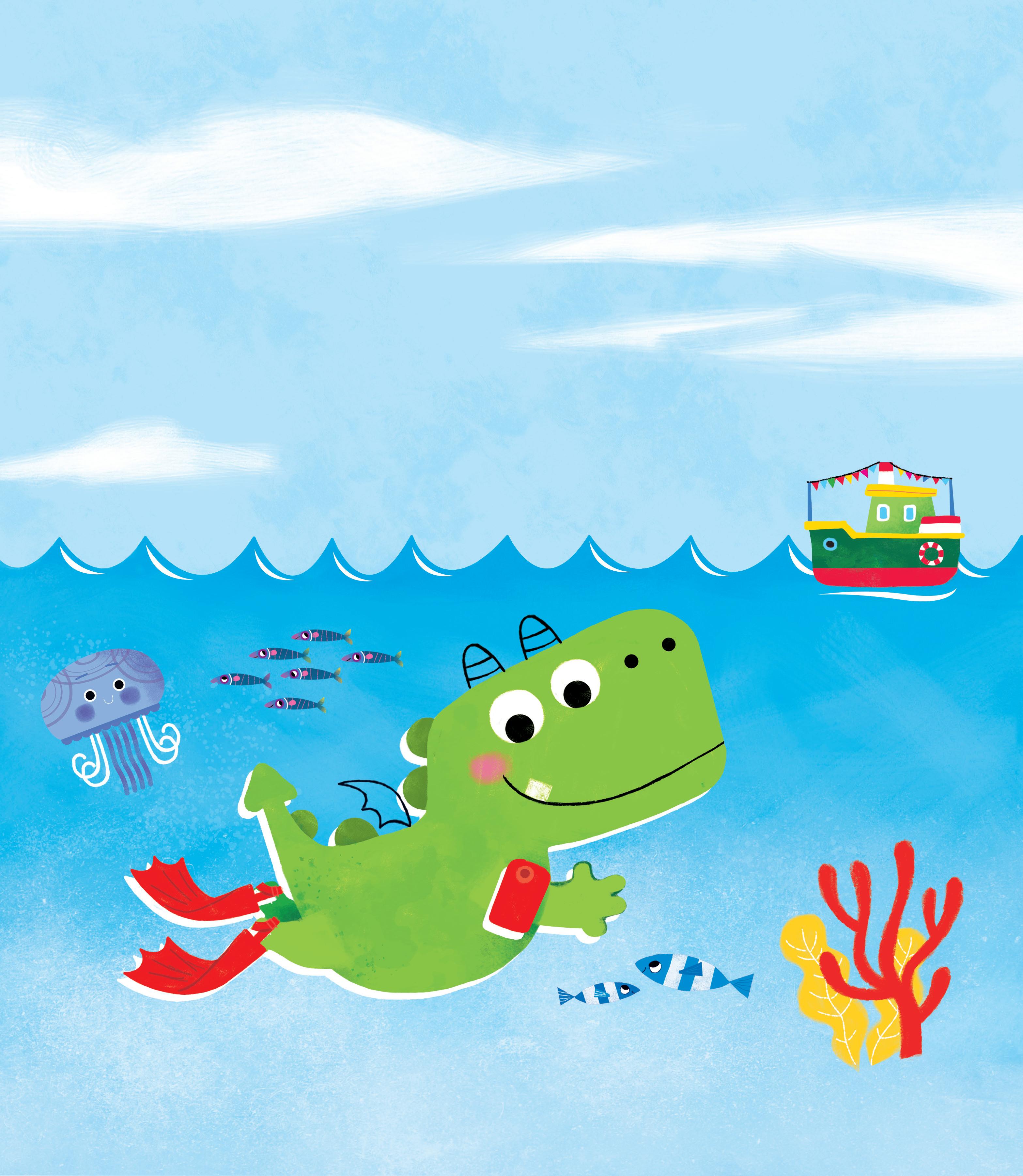 Racconta la storia in sequenza di Draghetto al mare, poi scrivi i numeri da 1 a 3 nei riquadri.