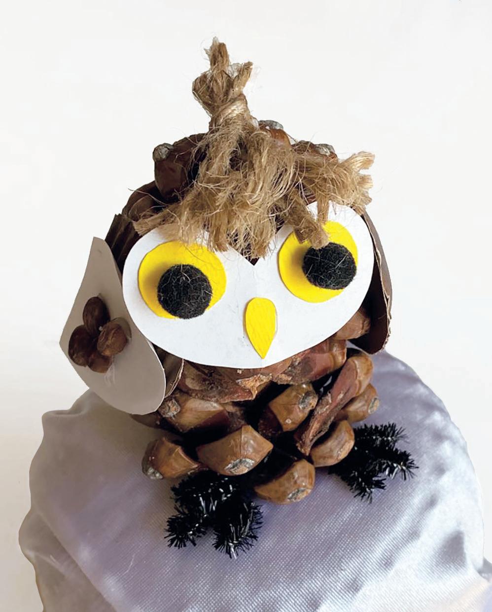 Usa la tua fantasia per realizzare un gufo partendo da una pigna.