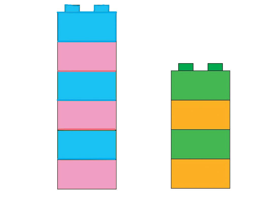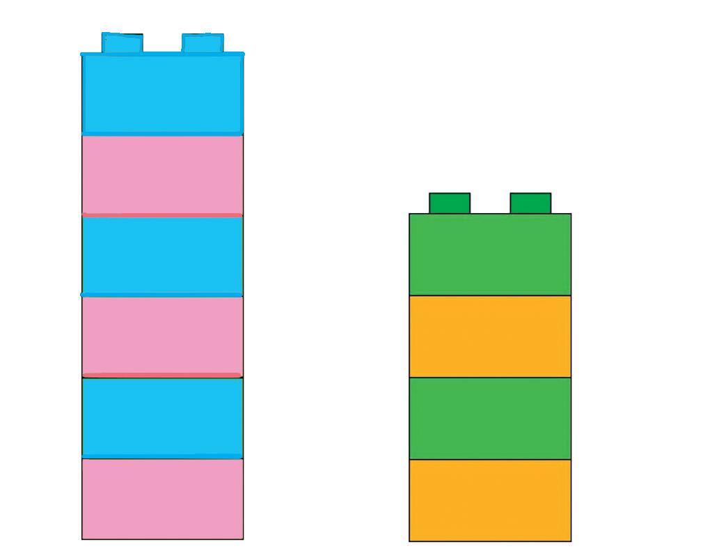 HAI A DISPOSIZIONE QUESTI MATTONCINI. DISEGNA SUL QUADERNO DUE TORRI IN MODO CHE SIANO ALTE UGUALI. POI SCRIVI I NUMERI E IL SIMBOLO.