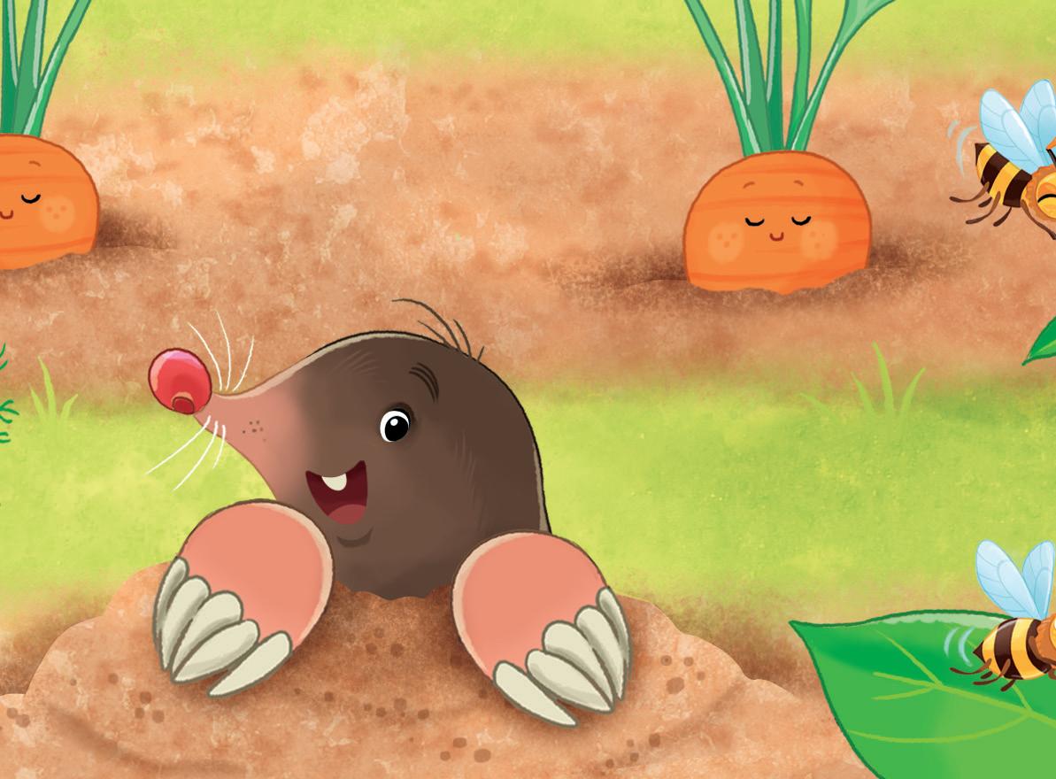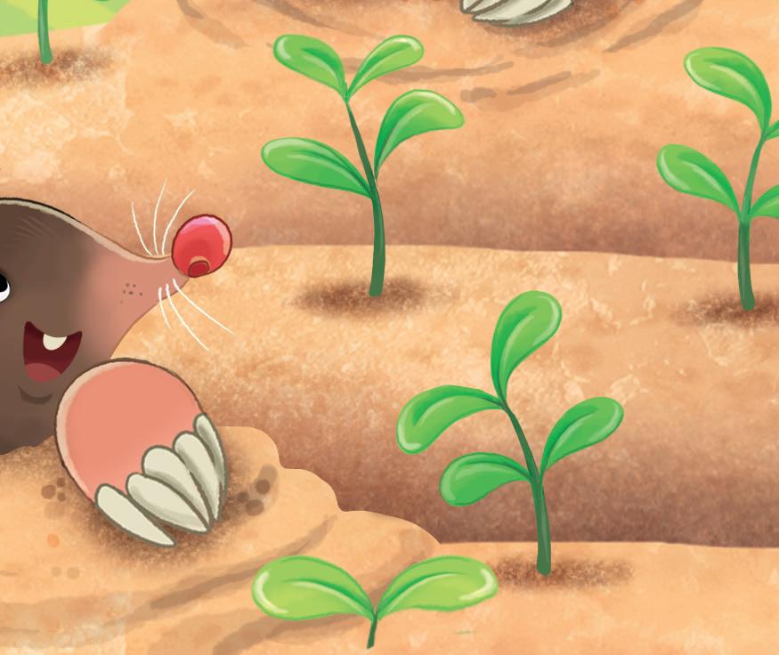 Un uccellino va in cerca di semi, i topolini si rincorrono, le talpe giocano a nascondino nelle loro gallerie sotterranee e i lombrichi fanno le capriole nel terreno soffice.