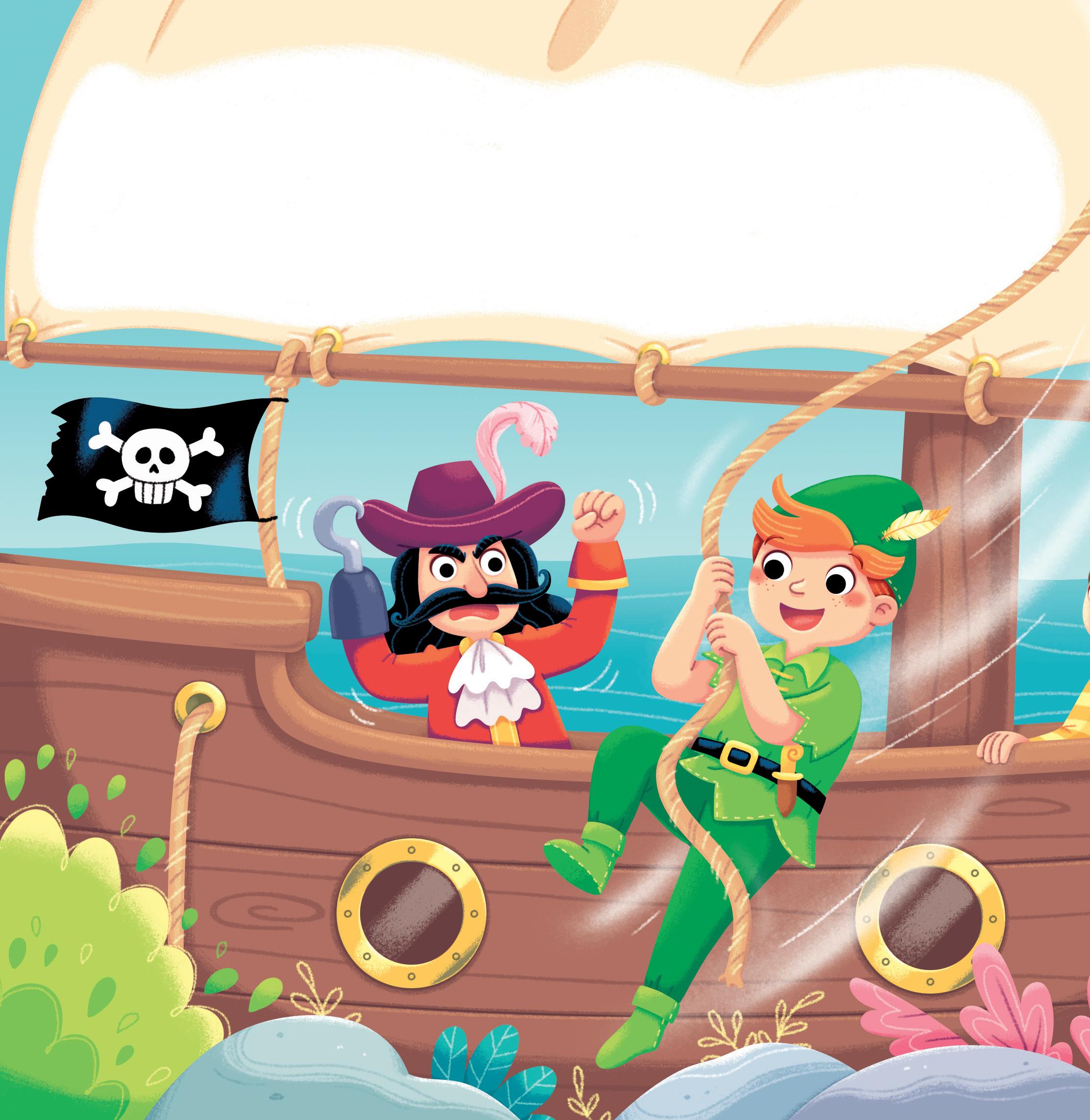 I bambini incontrano pirati, indiani, mille avventure e creature fantastiche... ma anche Capitan Uncino, il nemico giurato di Peter, che vuole vendicarsi perché a causa sua un coccodrillo gli ha mangiato una mano.