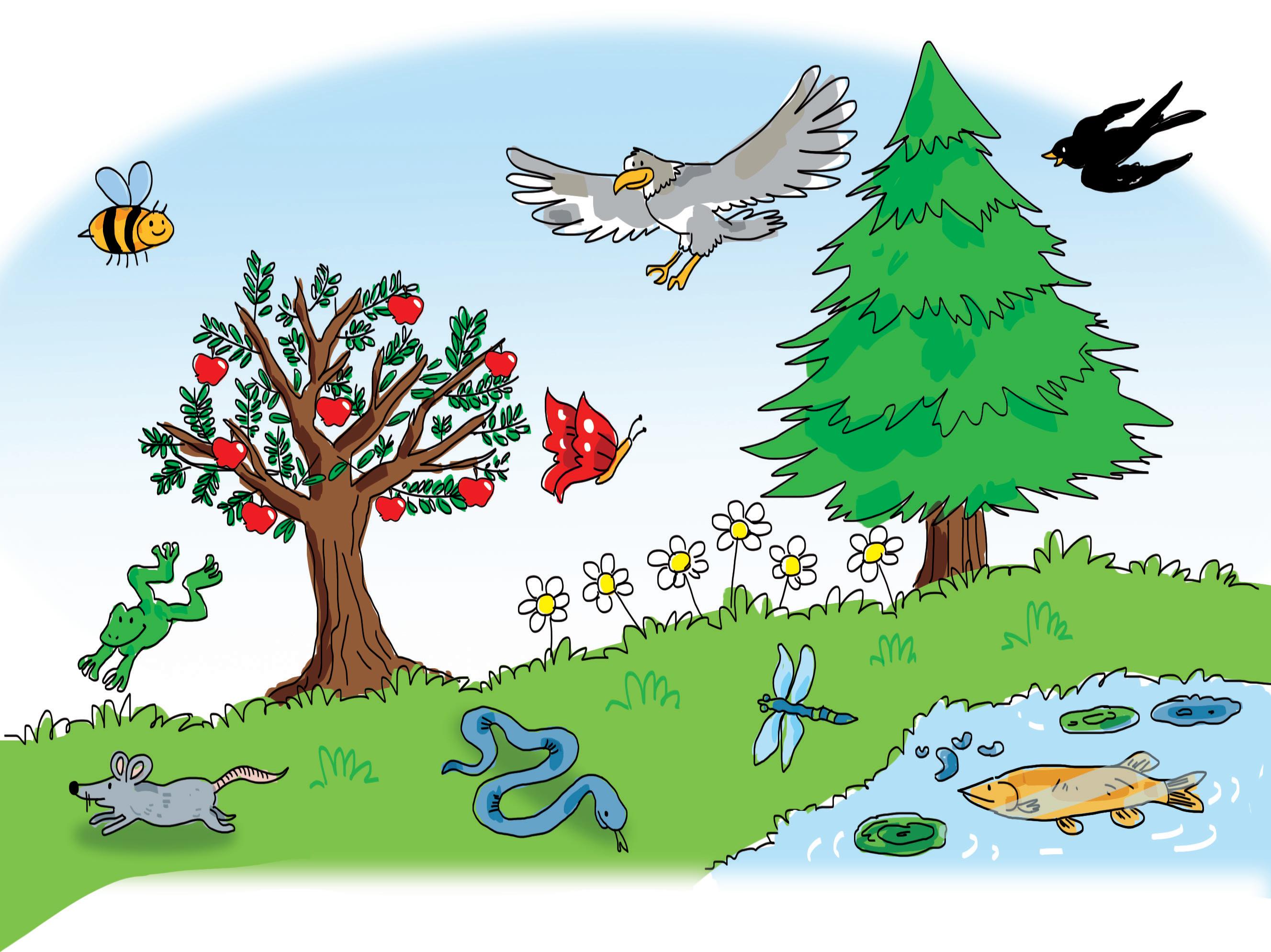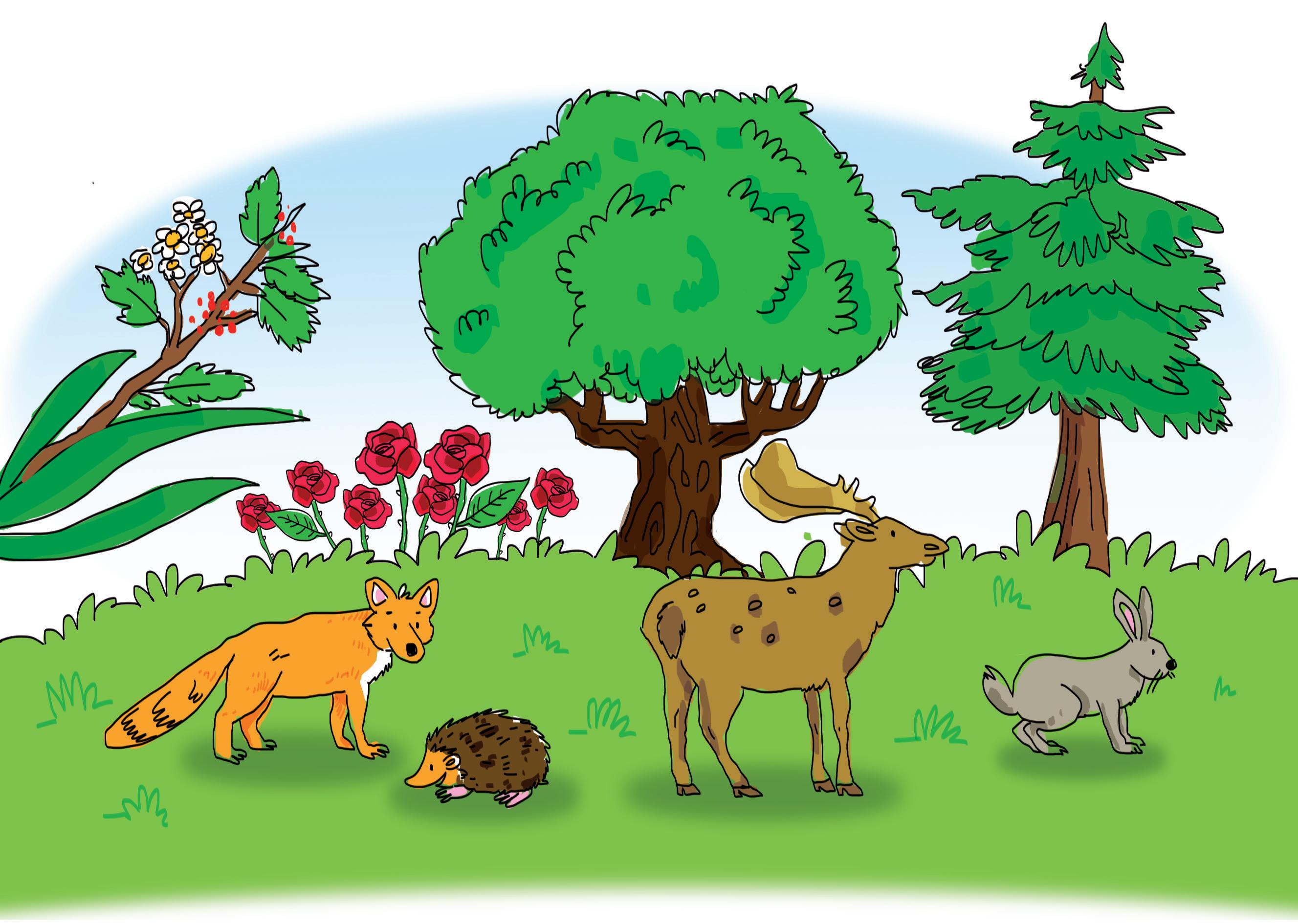 1 Scrivi accanto a ogni essere vivente il suo nome, scegliendo tra i seguenti: volpe • cervo • lepre • riccio • topo • rana • ape • libellula • farfalla • biscia • luccio • falco rondine • margherita • rosa • quercia • pino • abete • melo •biancospino • muschio • ninfea