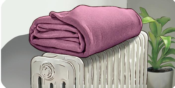D La coperta piegata è appoggiata al termosifone acceso.