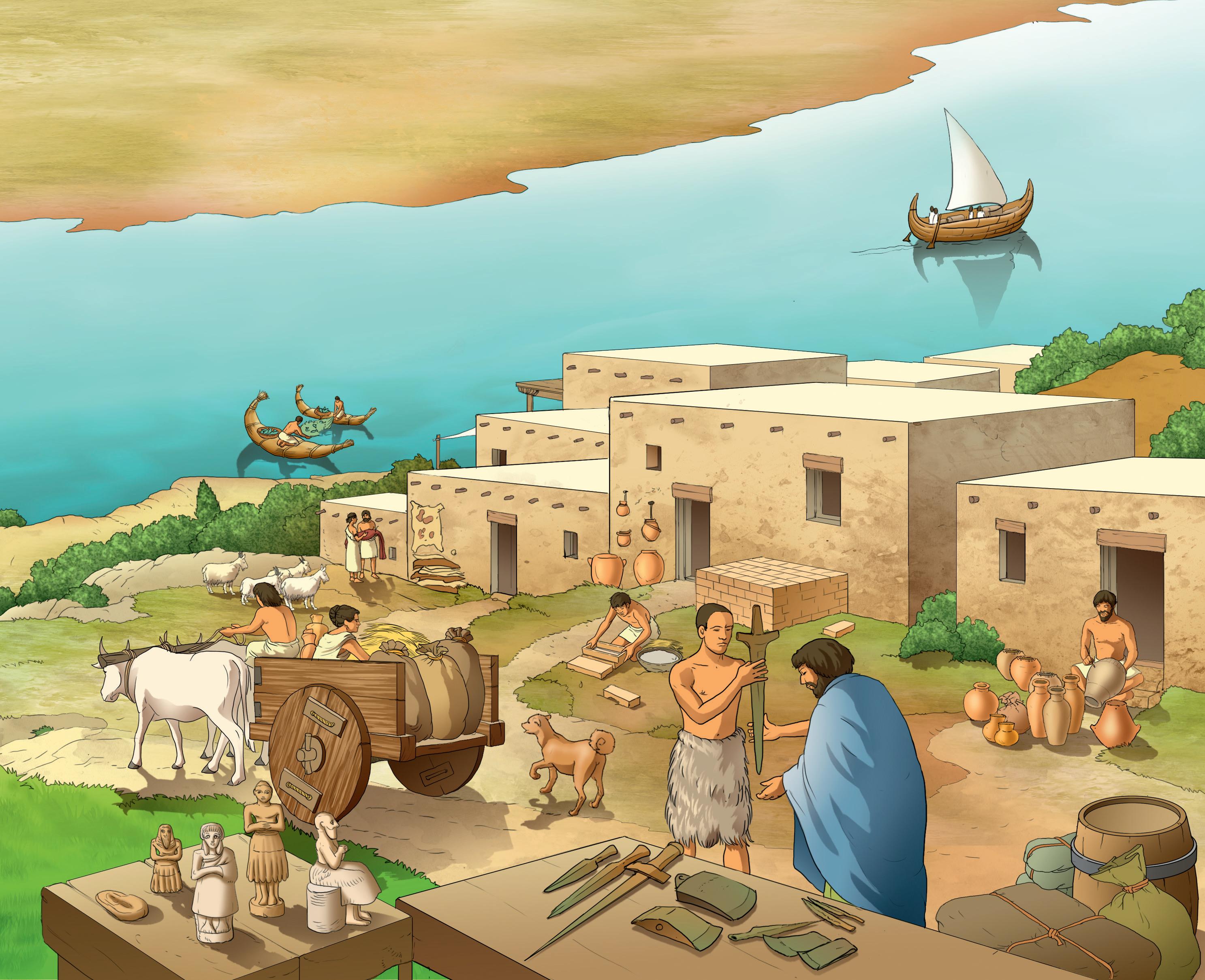 Durante il Neolitico gli esseri umani compresero come levigare meglio le pietre per costruire utensili sempre più raffinati. Impararono a coltivare le piante, ad allevare alcuni animali e a lavorare i metalli. Con la diffusione dell’agricoltura e dell’allevamento diventarono sedentari e si stabilirono in luoghi vicini a corsi d’acqua.