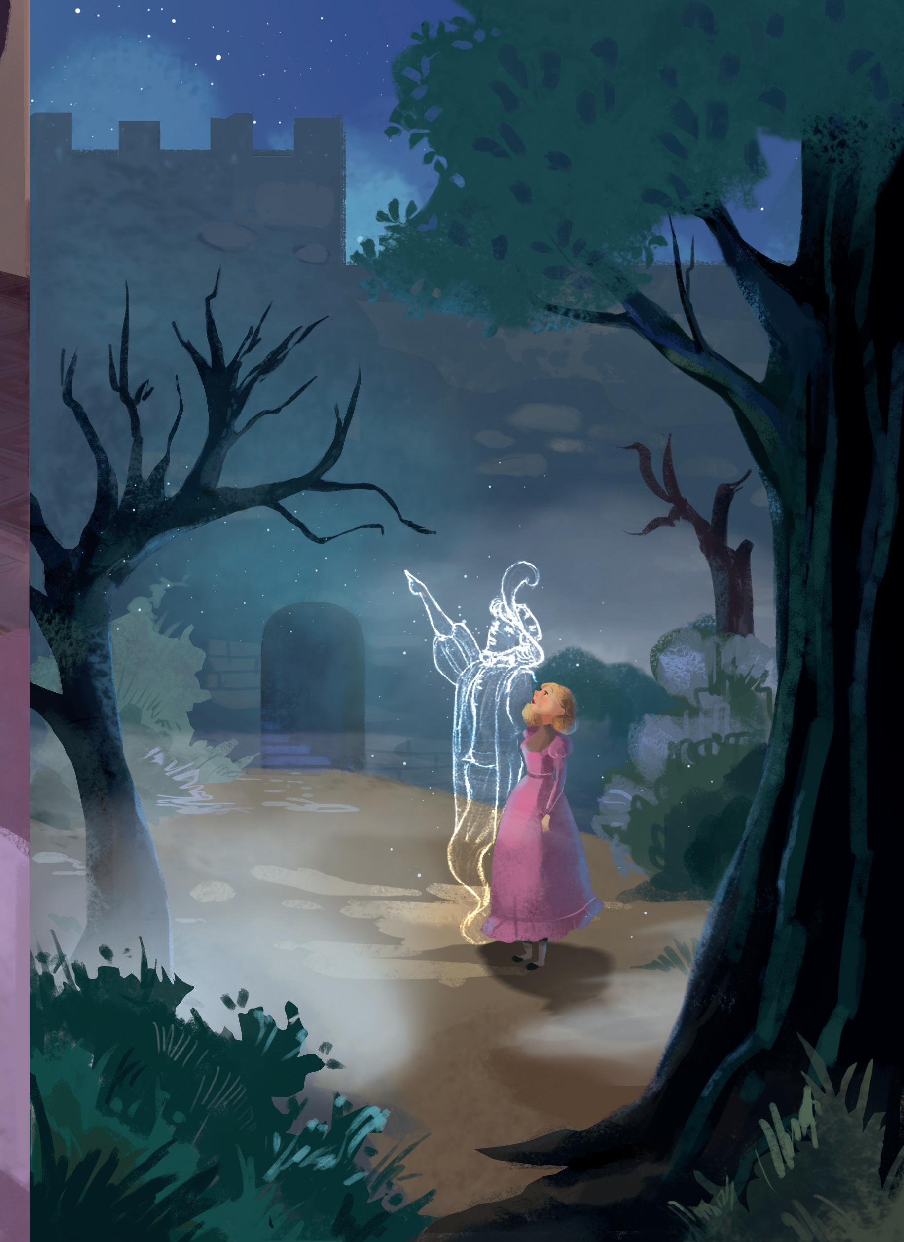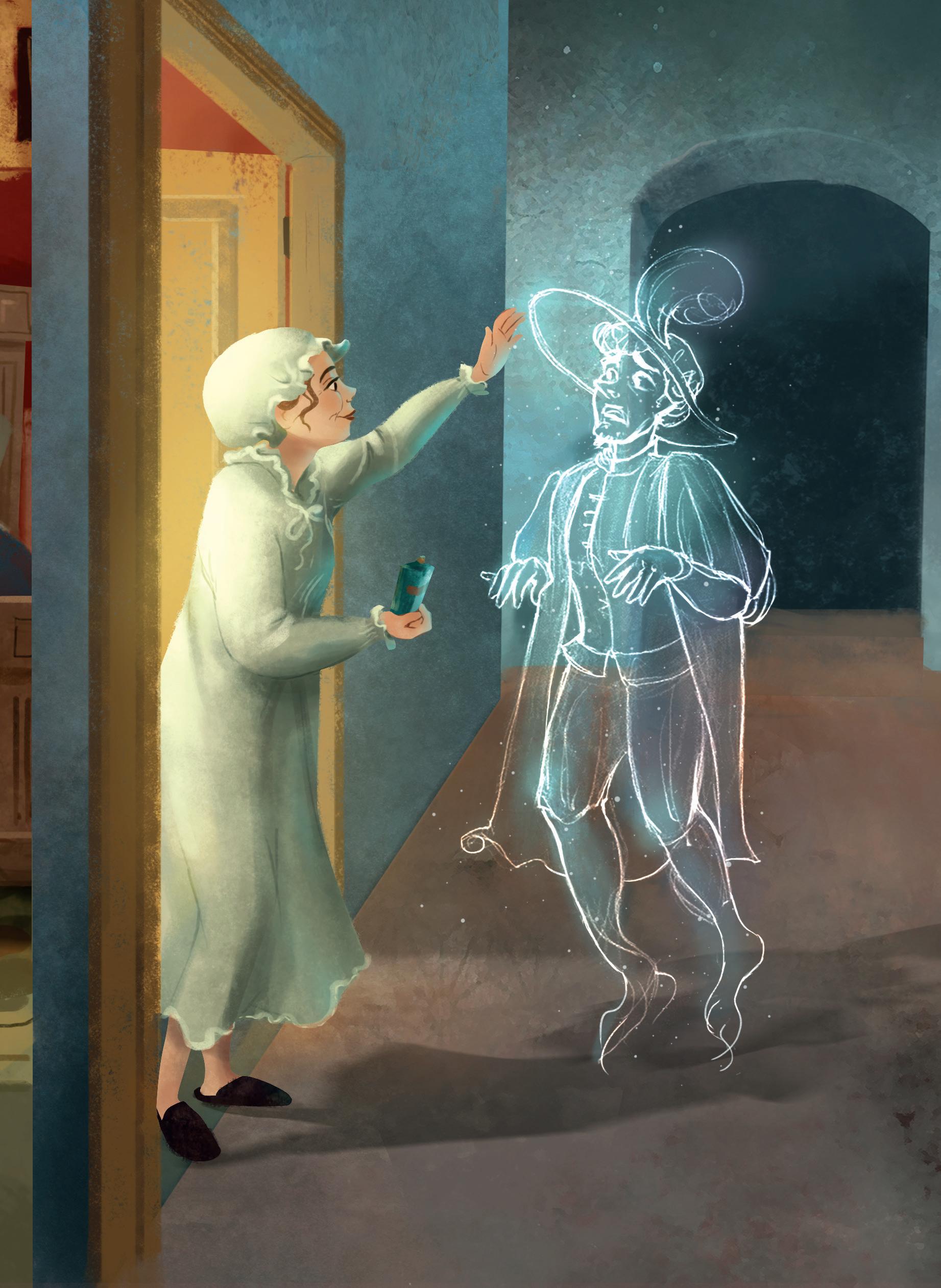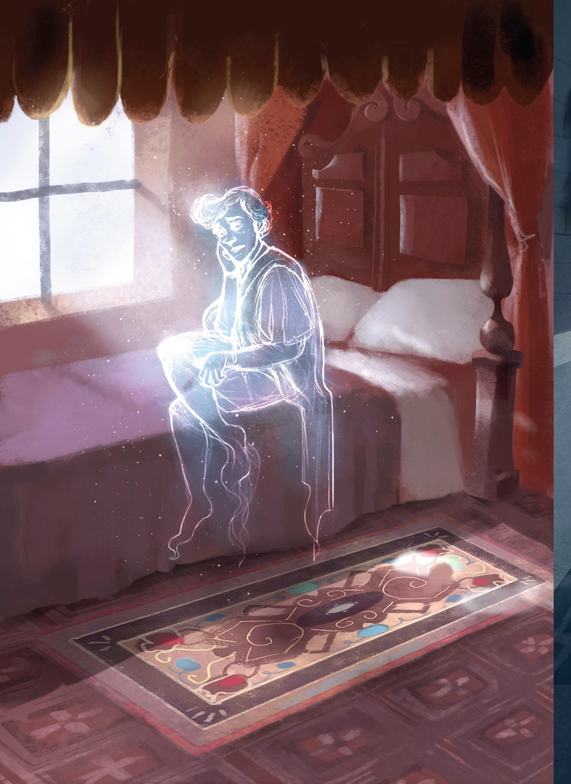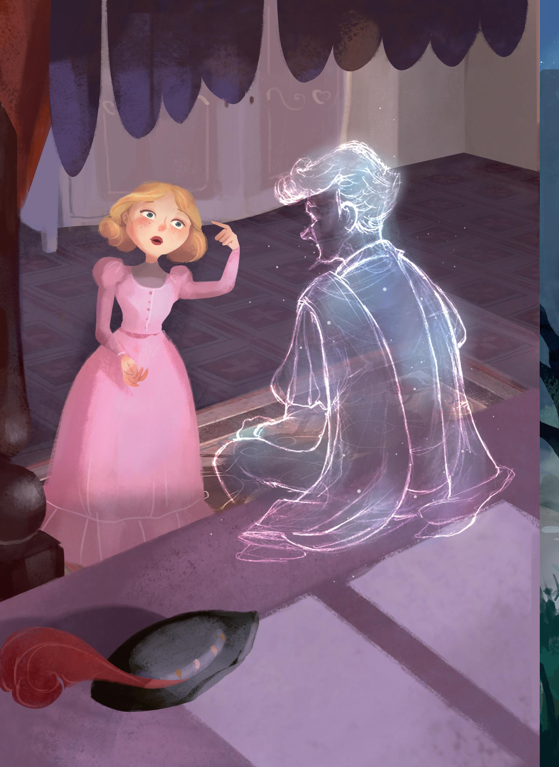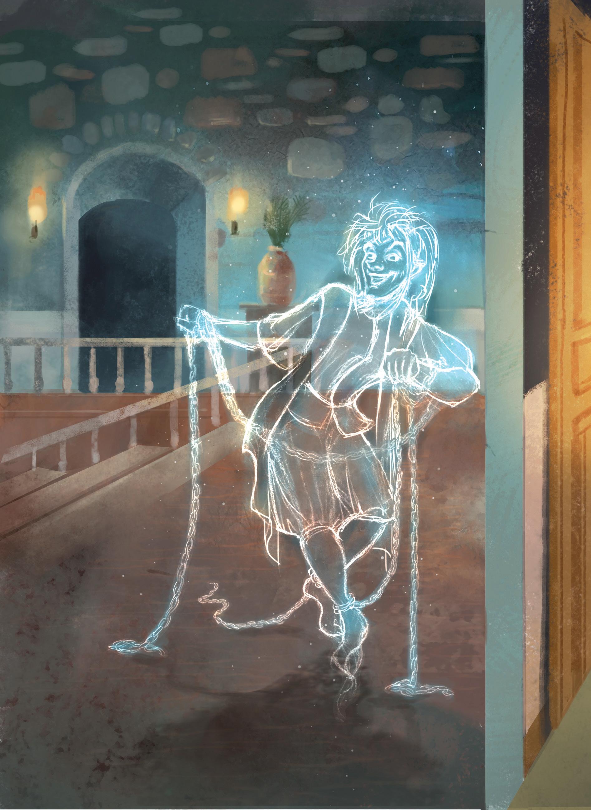 “I did a terrible thing many years ago. As punishment, there is a curse on me; I must haunt this castle and never find peace until a golden girl helps me regain my soul.”