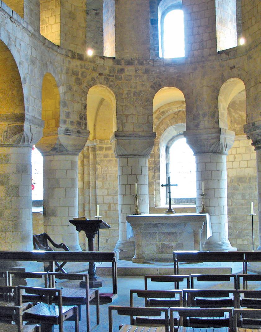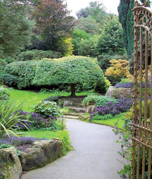 They go through a wall into the garden. In the garden there is a beautiful almond tree.