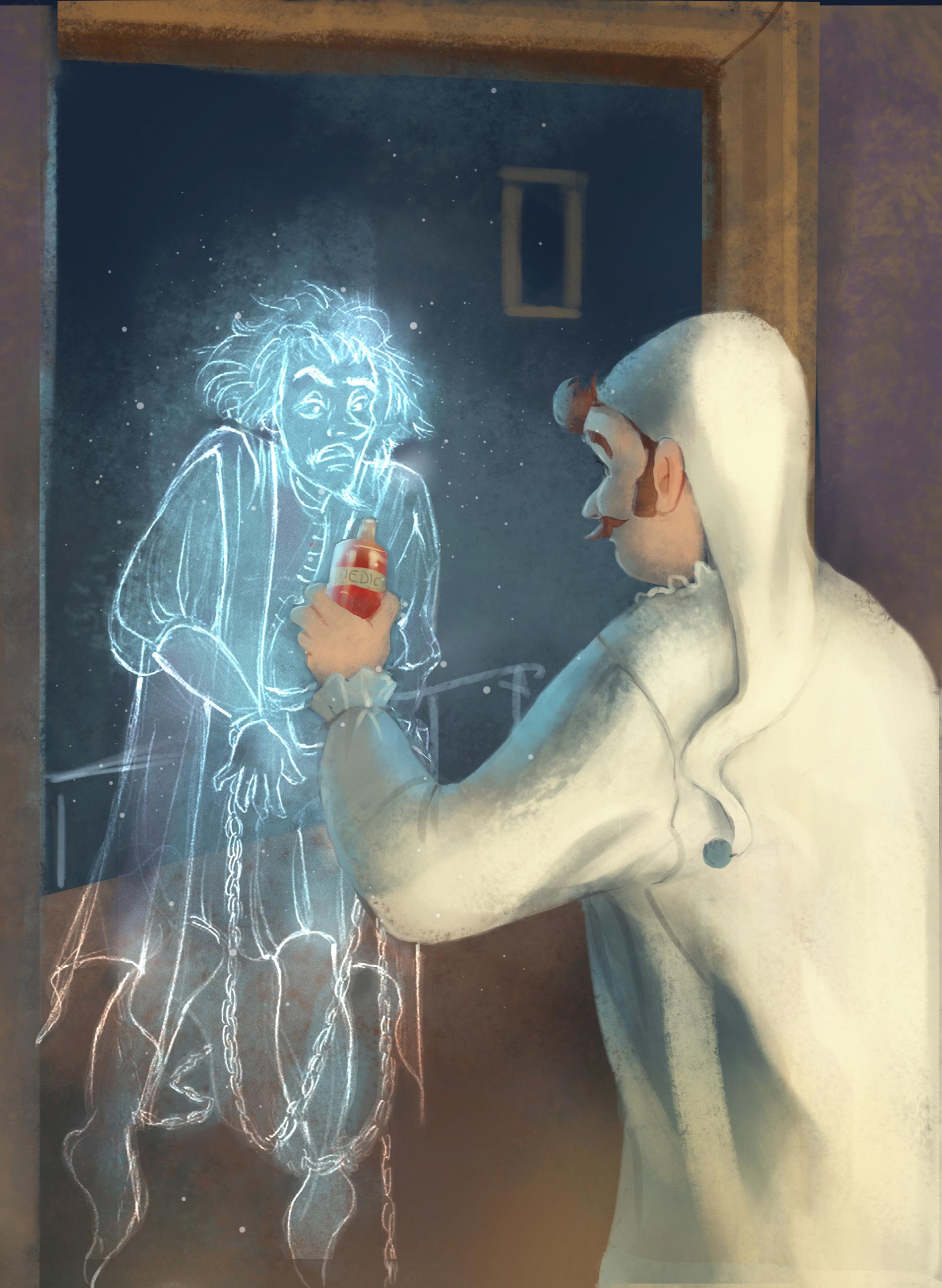 “Dear ghost, you don’t feel well, do you? Take this special syrup.”