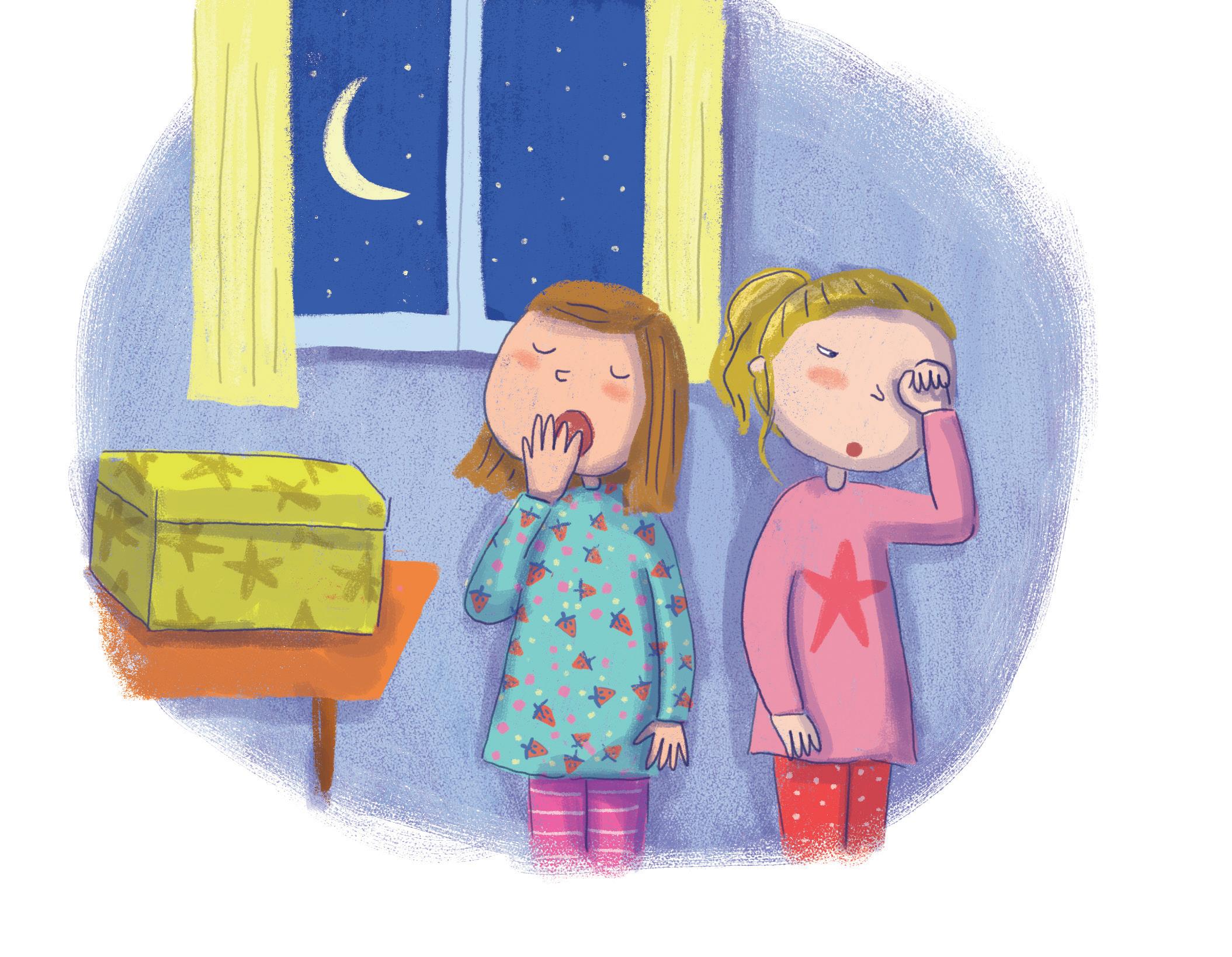 Di solito, alle nove di sera, Bea riceve le coccole, poi va a nanna. Stavolta, invece, mamma e papà russano allungati sul divano. Bea sbadiglia, Ambra pure. Com’è triste non avere chi ti aiuta a mettere il pigiama, ti dà la buonanotte e ti accompagna a letto, ma soprattutto… – Com’è triste non ricevere le coccole prima della nanna! – dice Bea.