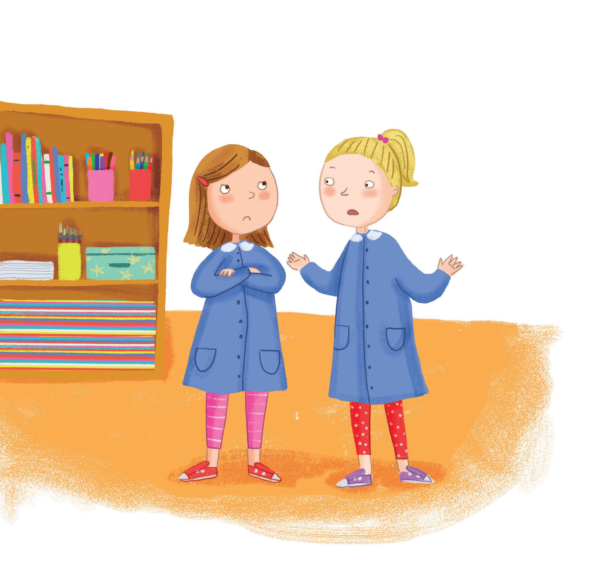 Alle otto del mattino, la pendola grande e scura nell’ingresso della scuola rintocca l’ora. Bea e Ambra entrano a scuola, mano nella mano. Aspettano che la maestra Olivia arrivi, sorrida, saluti, chiuda la porta e dia inizio ai giochi.