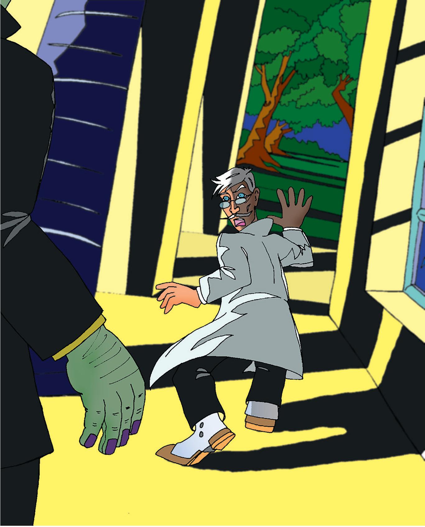 Non sa dove andare: è davvero disperato! Decide di ritornare dal dottor Frankenstein che, come lo vede, cerca di scacciarlo.