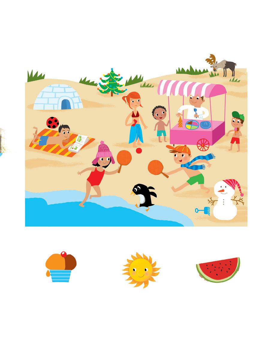 Osserva l'immagine e cancella con una x gli oggetti intrusi che non ti fanno pensare all’estate. Sono sette.