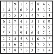 Fill in all the squares in the grid so that each row, each column and each 3x3 square contains all the digits from 1 to 9.