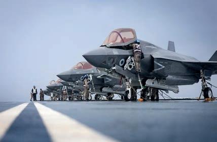 Upto 26 F-35B Lightning strike fighters operated by RAF 617 Dambusters Sqn and the Royal Navy’s 809 Naval Air Sqn spearheaded air operations with Allies, supported by A400M Atlas transporters and Voyager tankers.