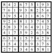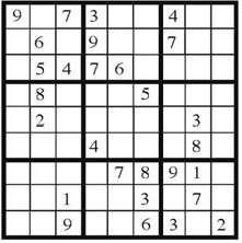 Fill in all the squares in the grid so that each row, each column and each 3x3 square contains all the digits from 1 to 9.
