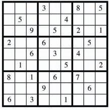 Fill in all the squares in the grid so that each row, each column and each 3x3 square contains all the digits from 1 to 9.