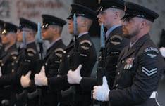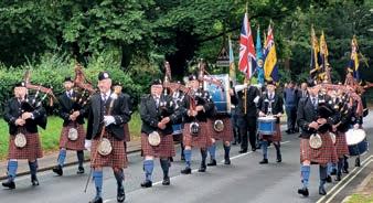 supported by veterans, the Royal British Legion and 759 (Beccles) Sqn cadets, all with their Standards, and led by the City of Norwich Pipe Band (pictured below). There was also a Remembrance Service. The Service Salute was taken by AVM The Hon David Murray, Deputy Lord Lieutenant of Suffolk.