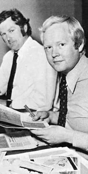 Í hönd fóru 11 góð ár sem ritstjóri tímaritsins Frjáls verzlun. Hér var unnið að uppsetningu blaðsins með Ingvari Hallsteinssyni, framleiðslustjóra.