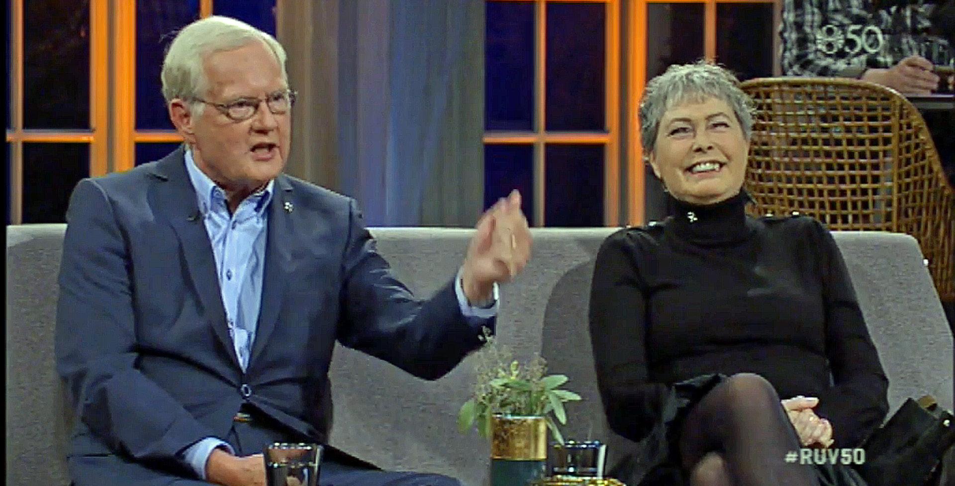 Svona gekk þetta alllengi en að lokum mættu þau á Laugaveginn og greinilegt að Margrét stjórnaði þeirri ferð. Áður en upptakan hófst sátu þau hjón með okkur Emil og Magnúsi inni í fundarherbergi og þá var áfengisbannið brotið. Koníaksflaska hafði verið keypt og Þorbergi boðið hjartastyrkjandi og örvandi drykkjartár fyrir átökin framundan.
