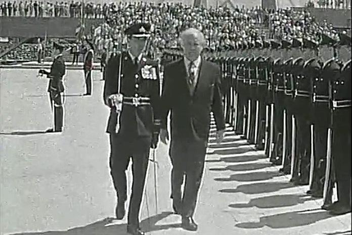Viðtal við Willy Brandt, utanríkisráðherra Vestur-Þýskalands, er hann kom til Reykjavíkur. Brandt varð kunnur sem borgarstjóri í Vestur-Berlín á viðsjárverðum tímum og átti eftir að verða kanslari V-Þýskalands. Hann beitti sér fyrir slökun spennu í kalda stríðinu. Til vinstri á myndinni er Kári Jónasson, fréttamaður Útvarpsins.