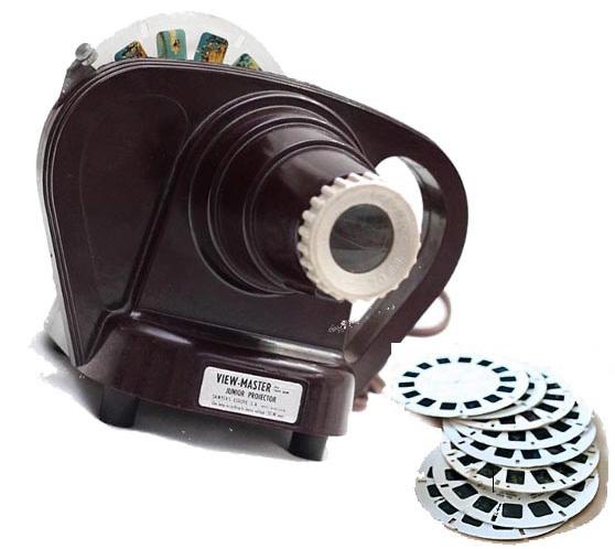 hin hringlaga Viewmaster myndaspjöld með stuttum myndaseríum, byggðum m.a. á Grimms-ævintýrum og frásögnum af þekktum köppum í villta vestrinu. Mér fannst rétt að efna til sýningar fyrir krakkana í hverfinu rétt fyrir jólin og kom í ljós að aðsóknin yrði miklu meiri en við yrði ráðið inni í lítilli íbúð. Nú voru góð ráð dýr.