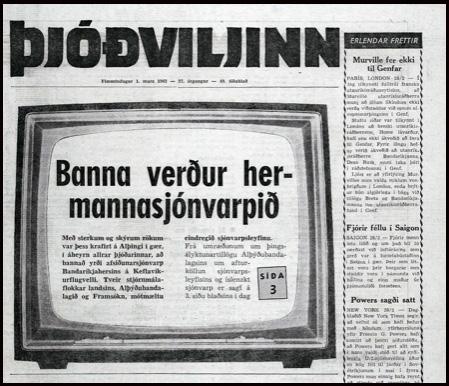 Alþýðublaðið, flokksblað menntmálaráðherrans, sló sjónvarpsmálum gjarnan upp á forsíðu.